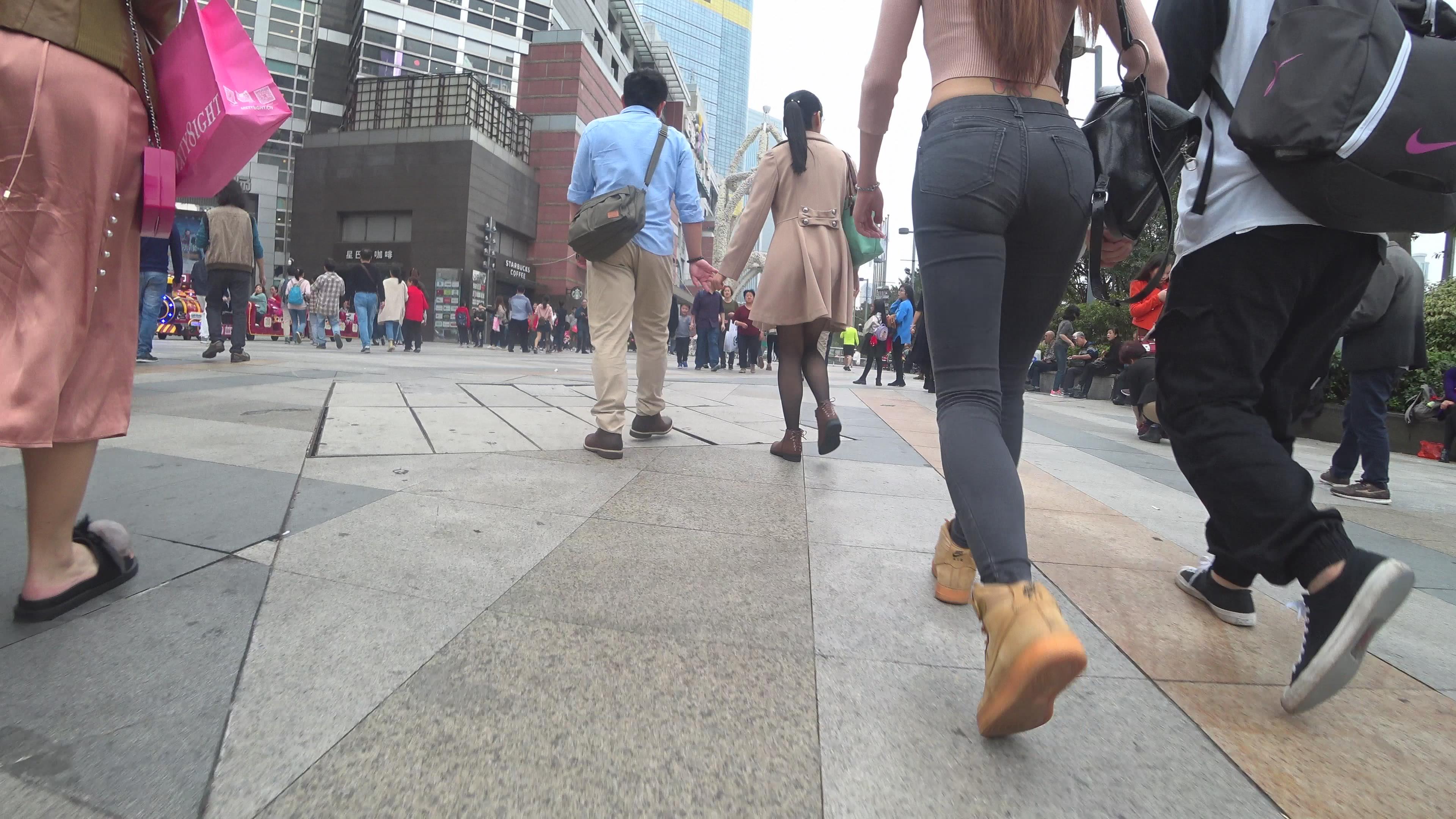 4K 超级性感翘臀紧身牛仔裤街拍美女 编号3159