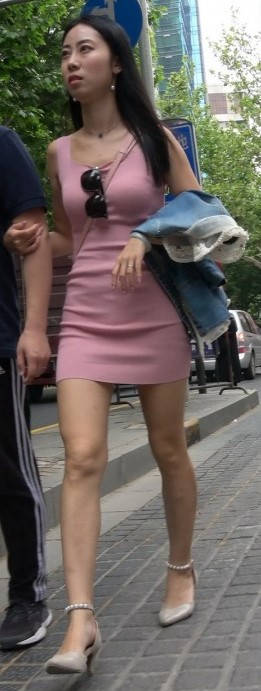 4K - 性感粉红包臀裙街拍高跟街拍美女 编号9419