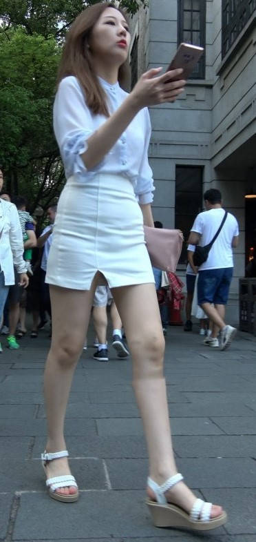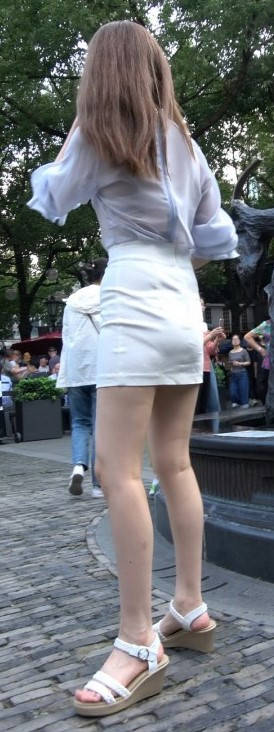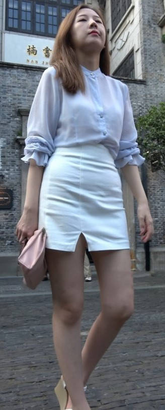 4K - 街拍白色性感短裙小姐姐 编号9422