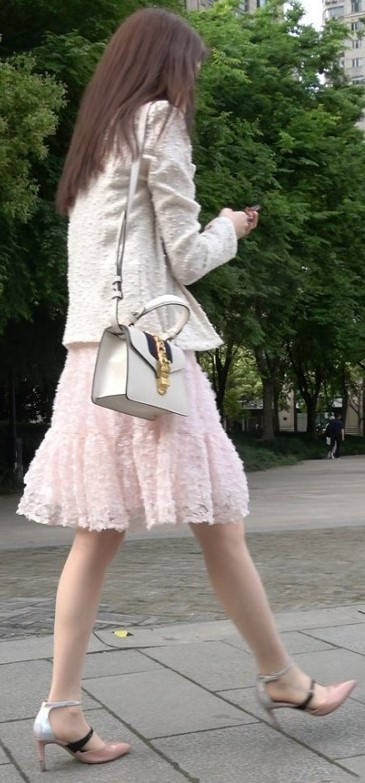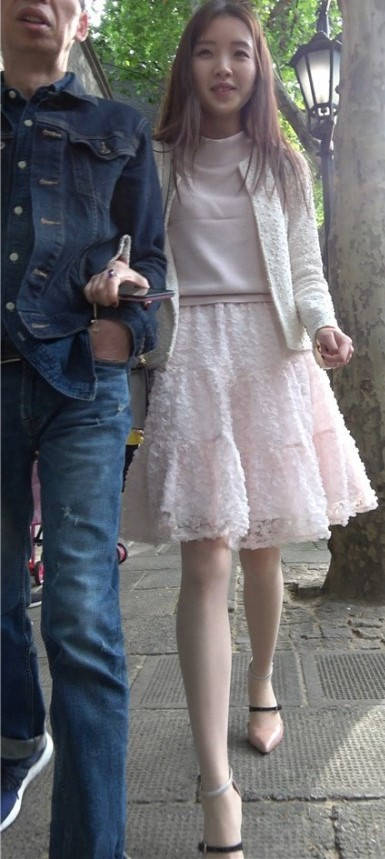 4K - 街拍粉色裙丝袜甜美靓妹 编号9433
