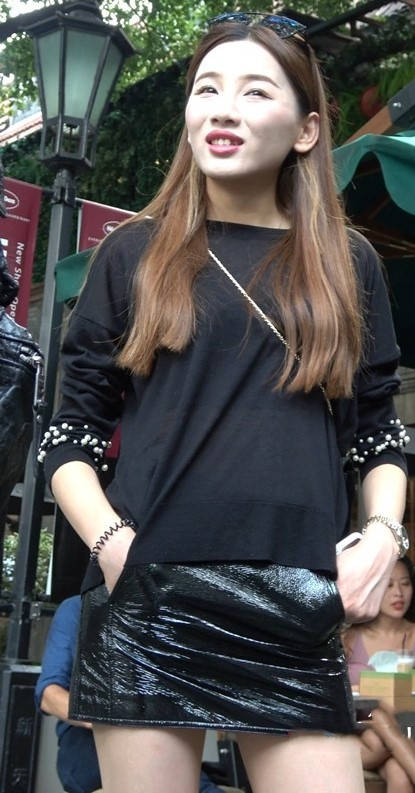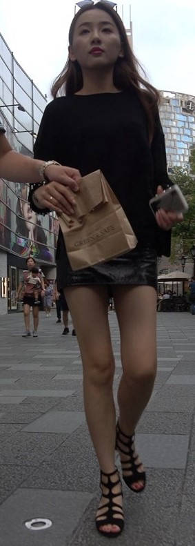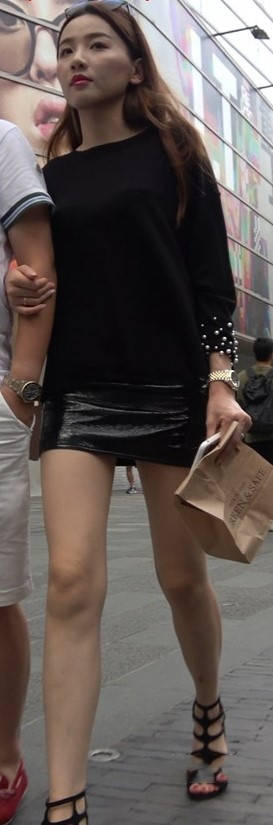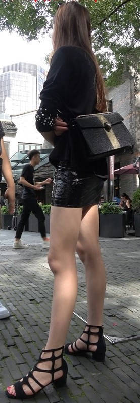 K 黑T恤小短裙性感街拍美腿美女 编号9440