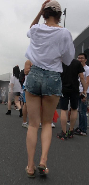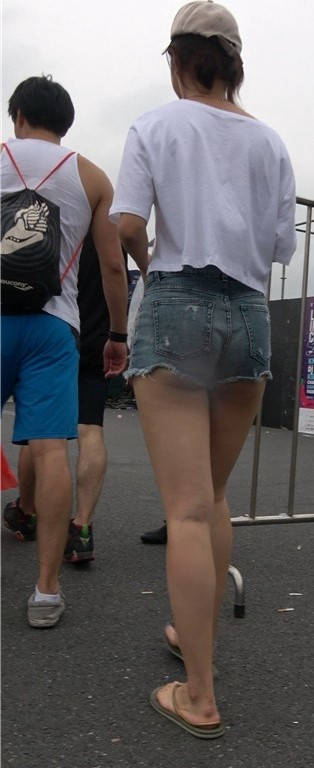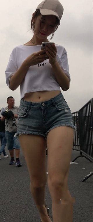 青春气息牛仔热裤白T恤街拍美女小姐姐 编号9446