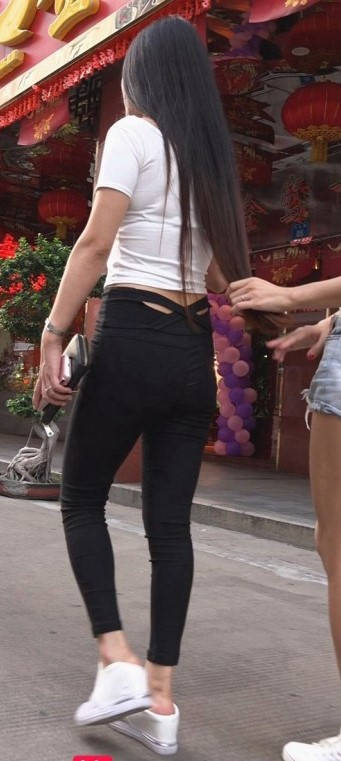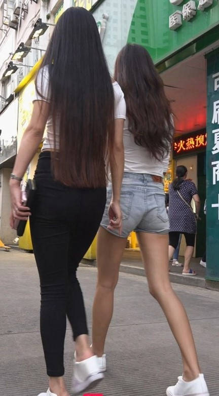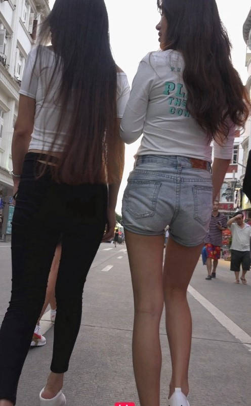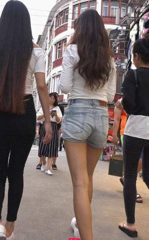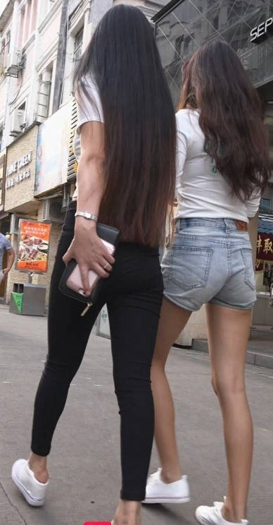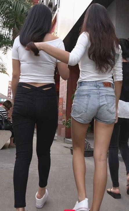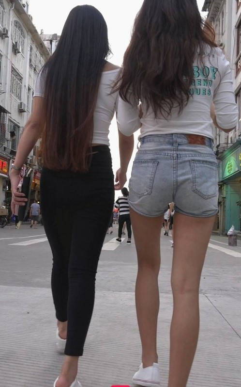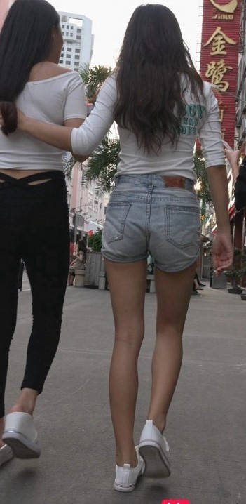 包臀黑裤牛仔热裤两美女在逛街 编号9165