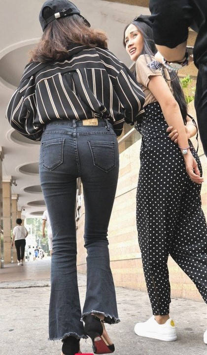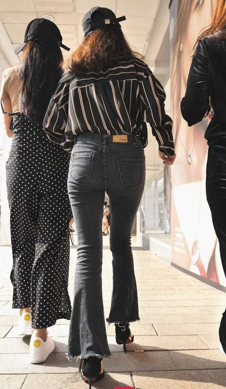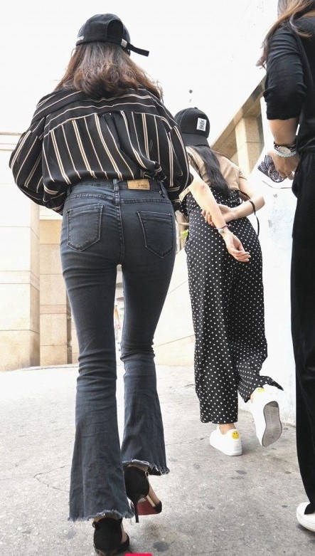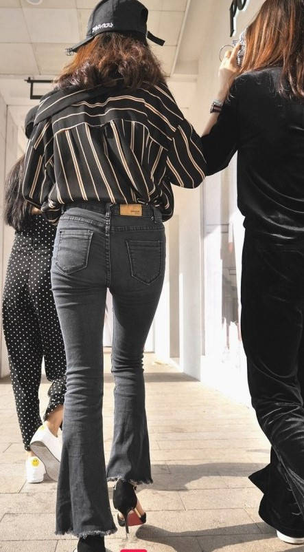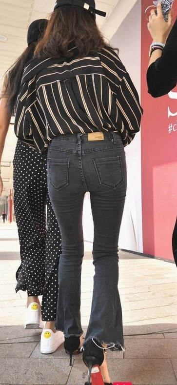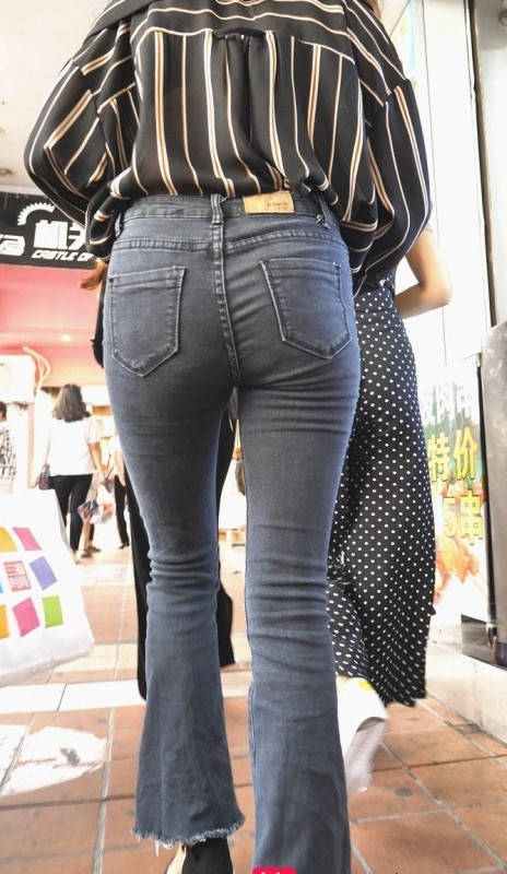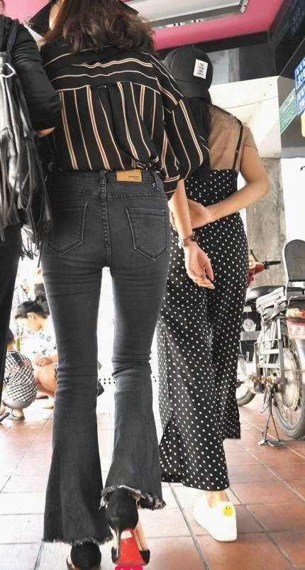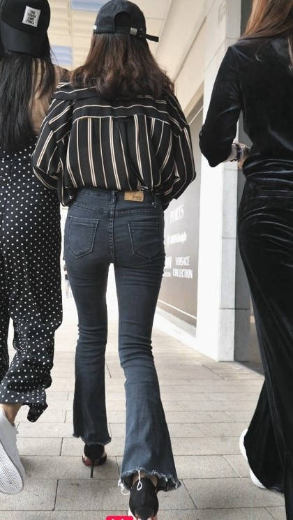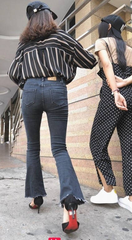4K-高跟黑色牛仔裤饱满翘臀细长腿大学妹 编号9174
