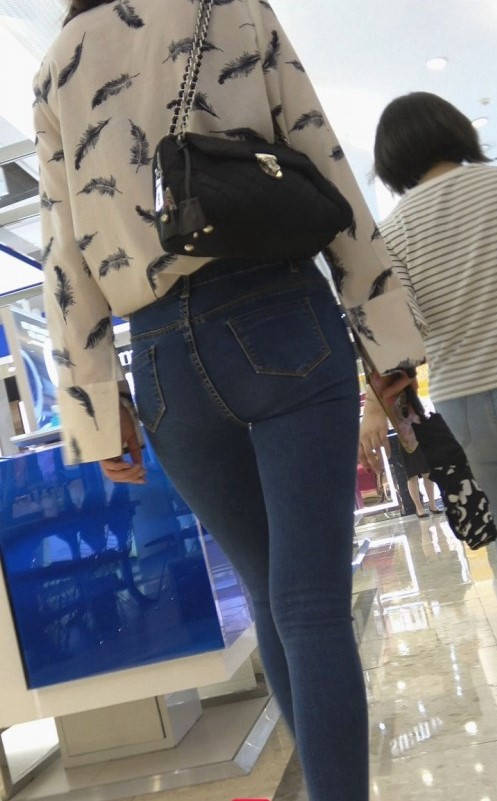 蓝色牛仔裤美臀美女 编号9271