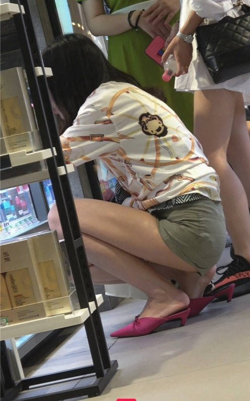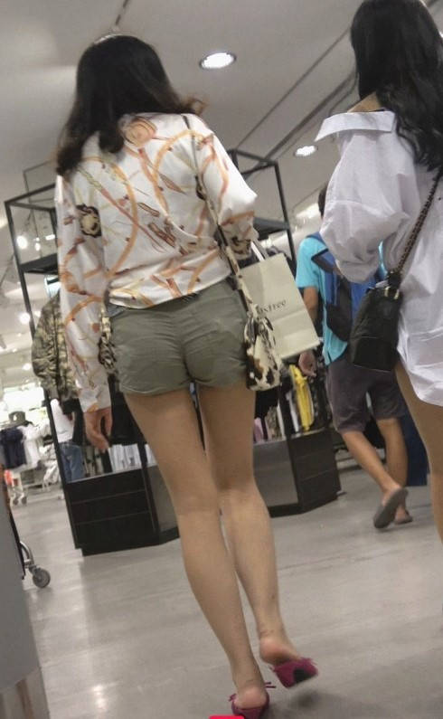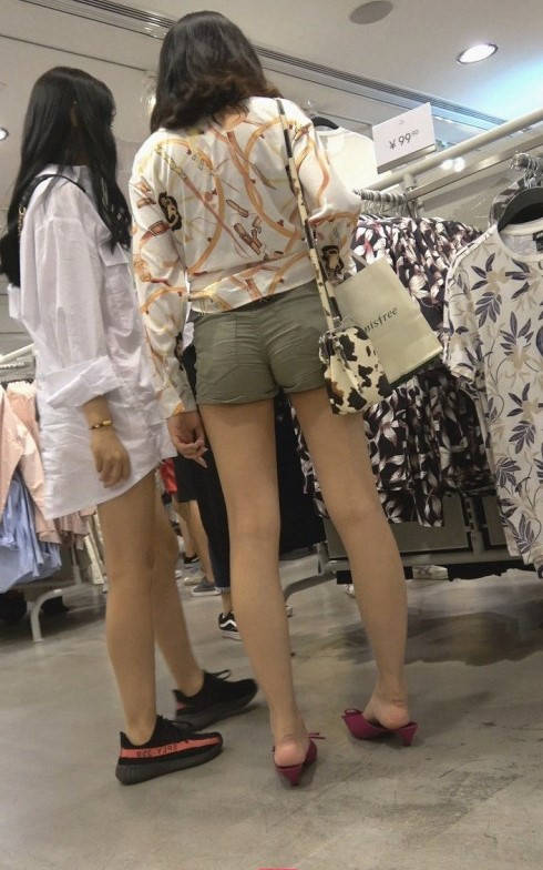 4K-买衣服的绿色热裤圆润翘臀极品长腿美女 编号9305