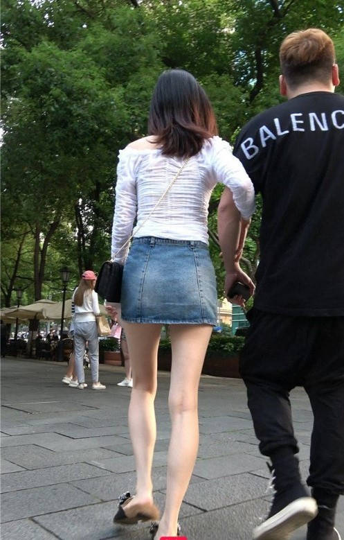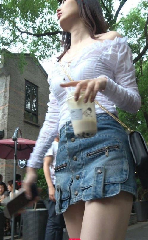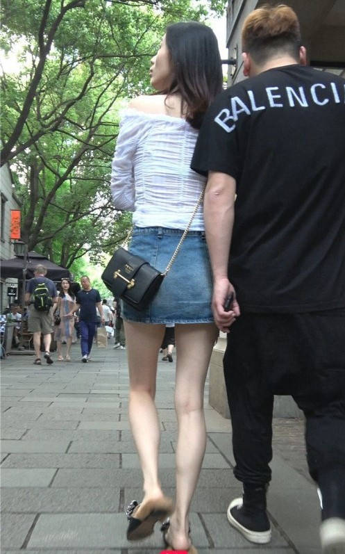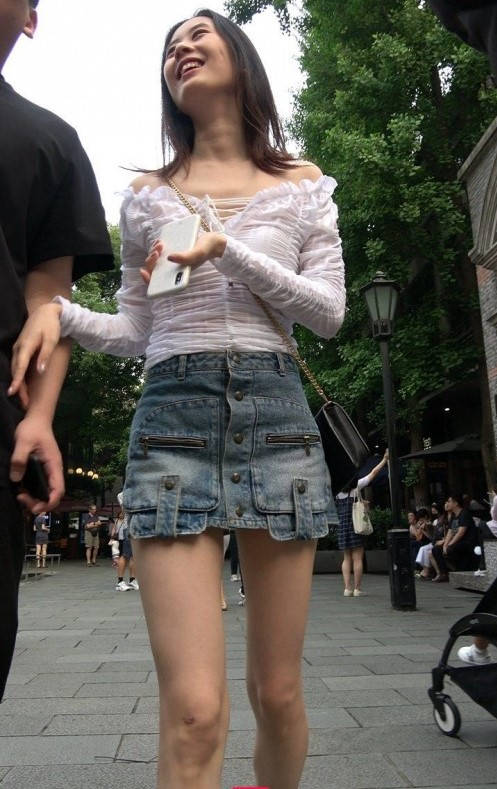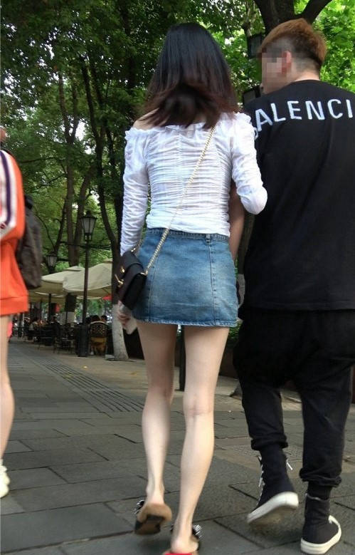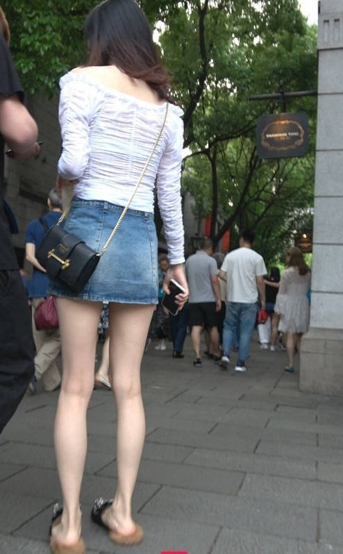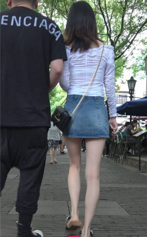 4K-街拍牛仔短裙长腿气质美女 编号9319