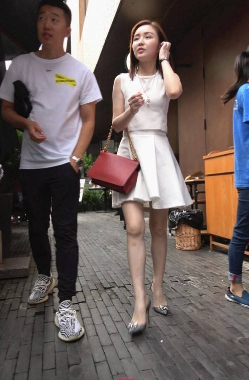 4K-气质连衣裙长腿高跟街拍美女 编号9332