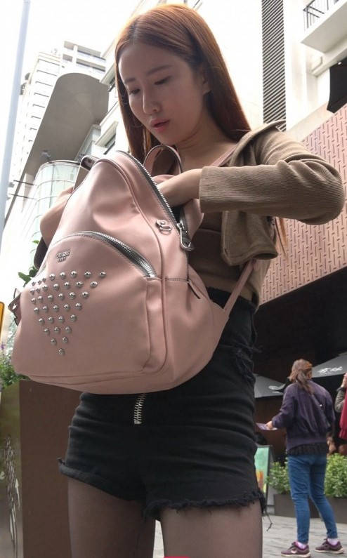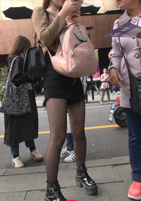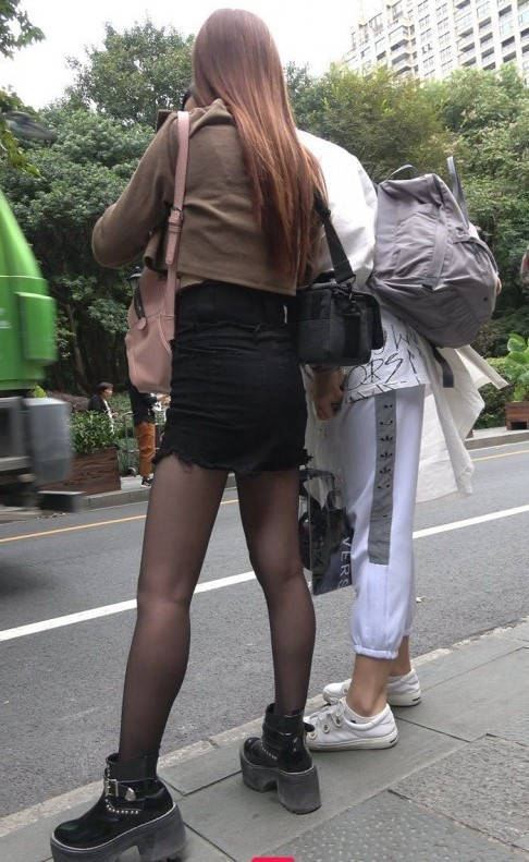 4K-黑色热裤黑丝长腿高跟街拍美女 编号9335