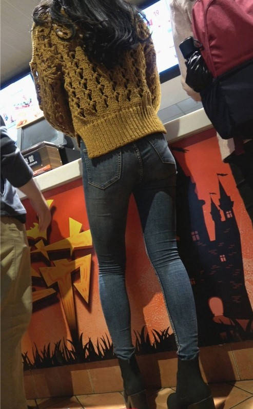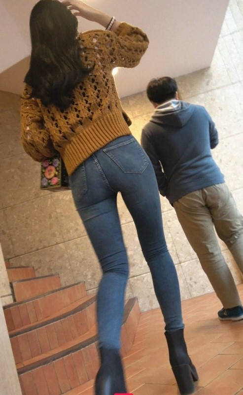4K-蓝色紧身裤极品圆润翘臀大长腿美女 编号9339