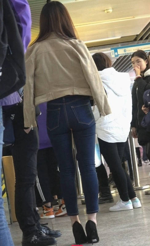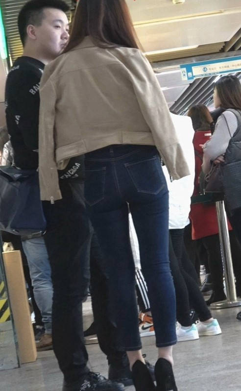 4K-蓝色紧绷牛仔裤漂亮翘臀极品美女 编号9341