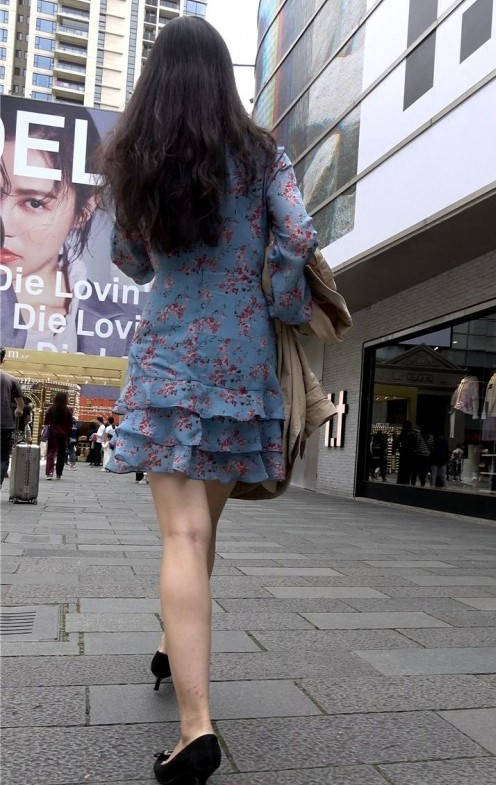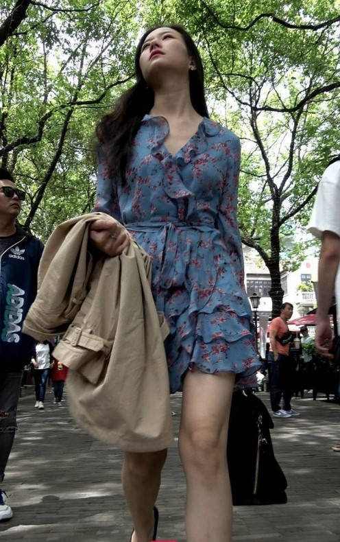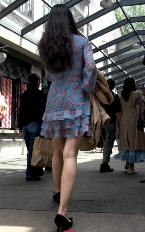 4K-连衣裙长腿街拍高跟美女 编号9348