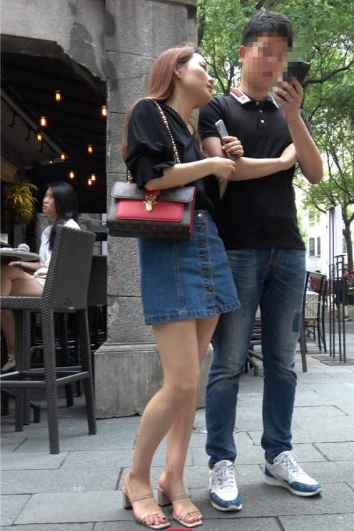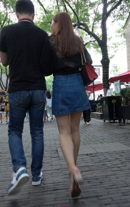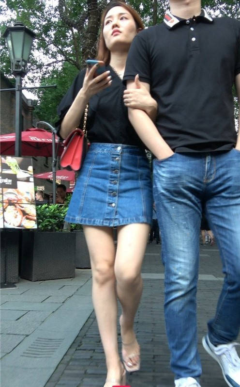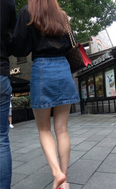 4K-街拍牛仔短裙长腿街拍高跟美女 编号9359