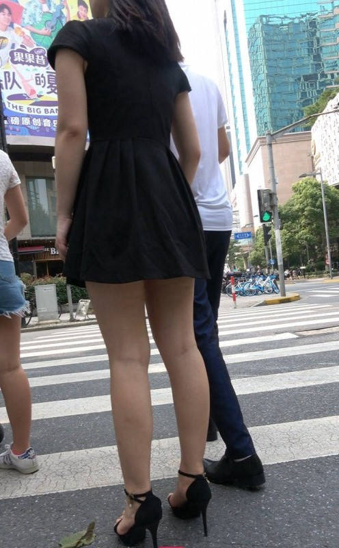 4K-性感连衣裙长腿街拍高跟美女 编号9360