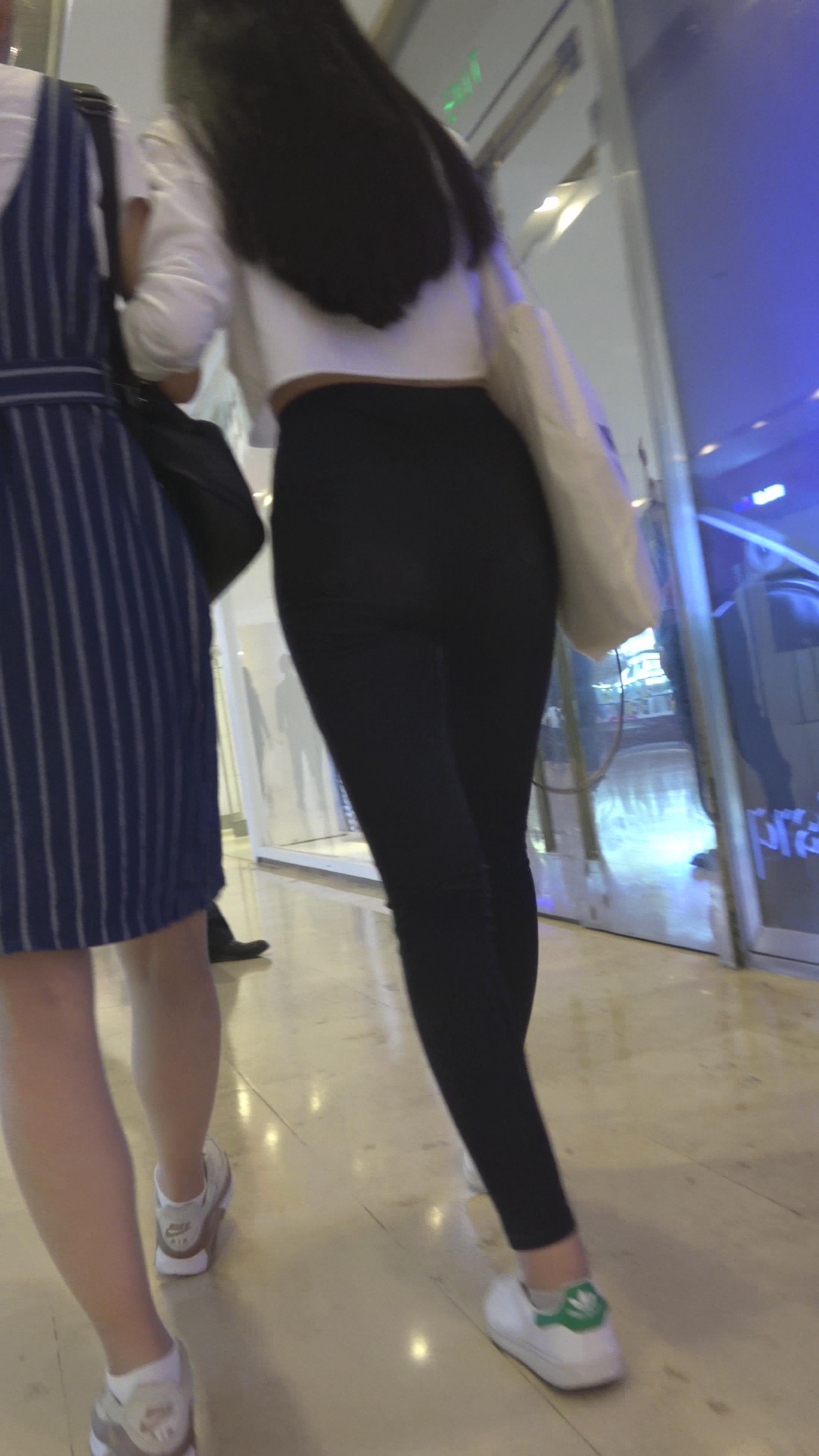 4K 黑色紧身裤蜜桃臀街拍美女 编号3178