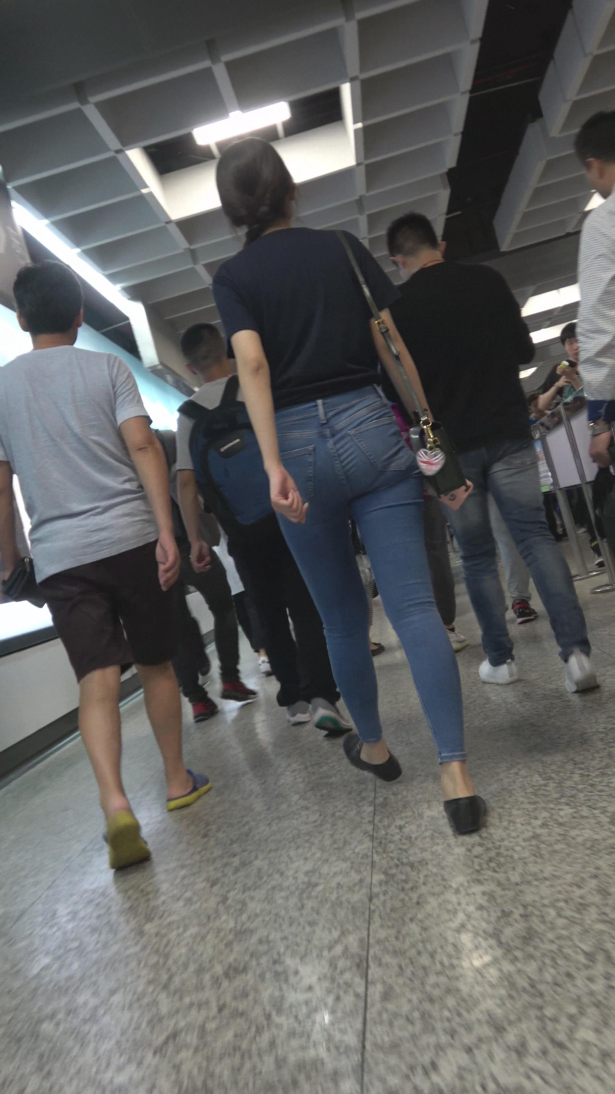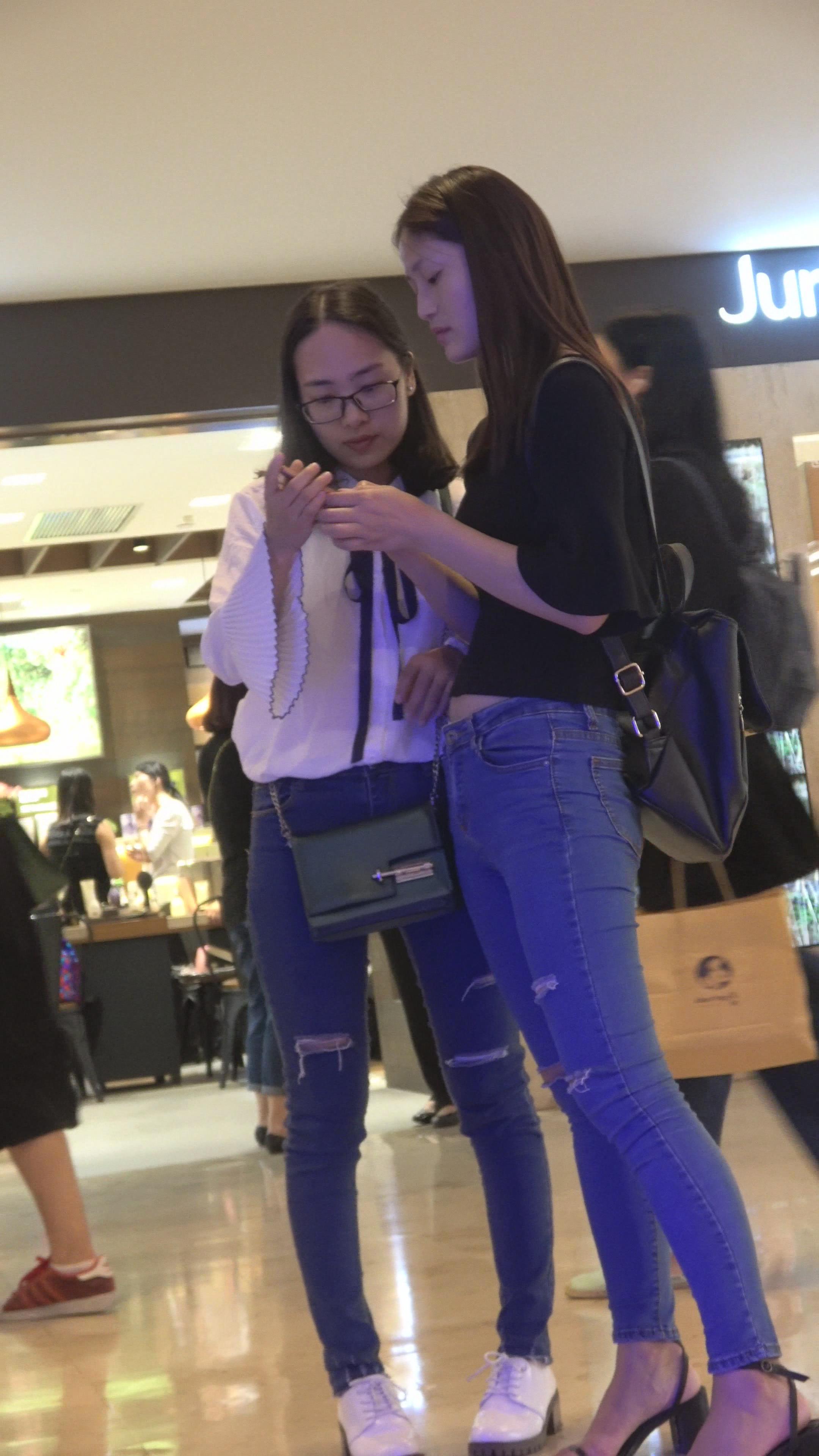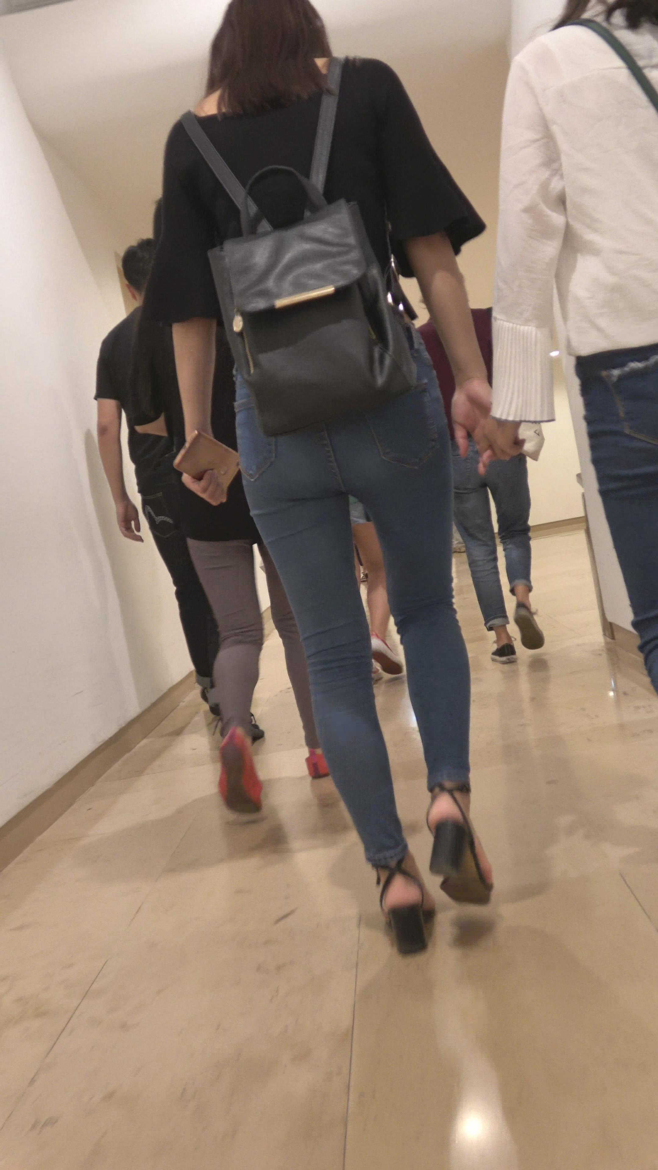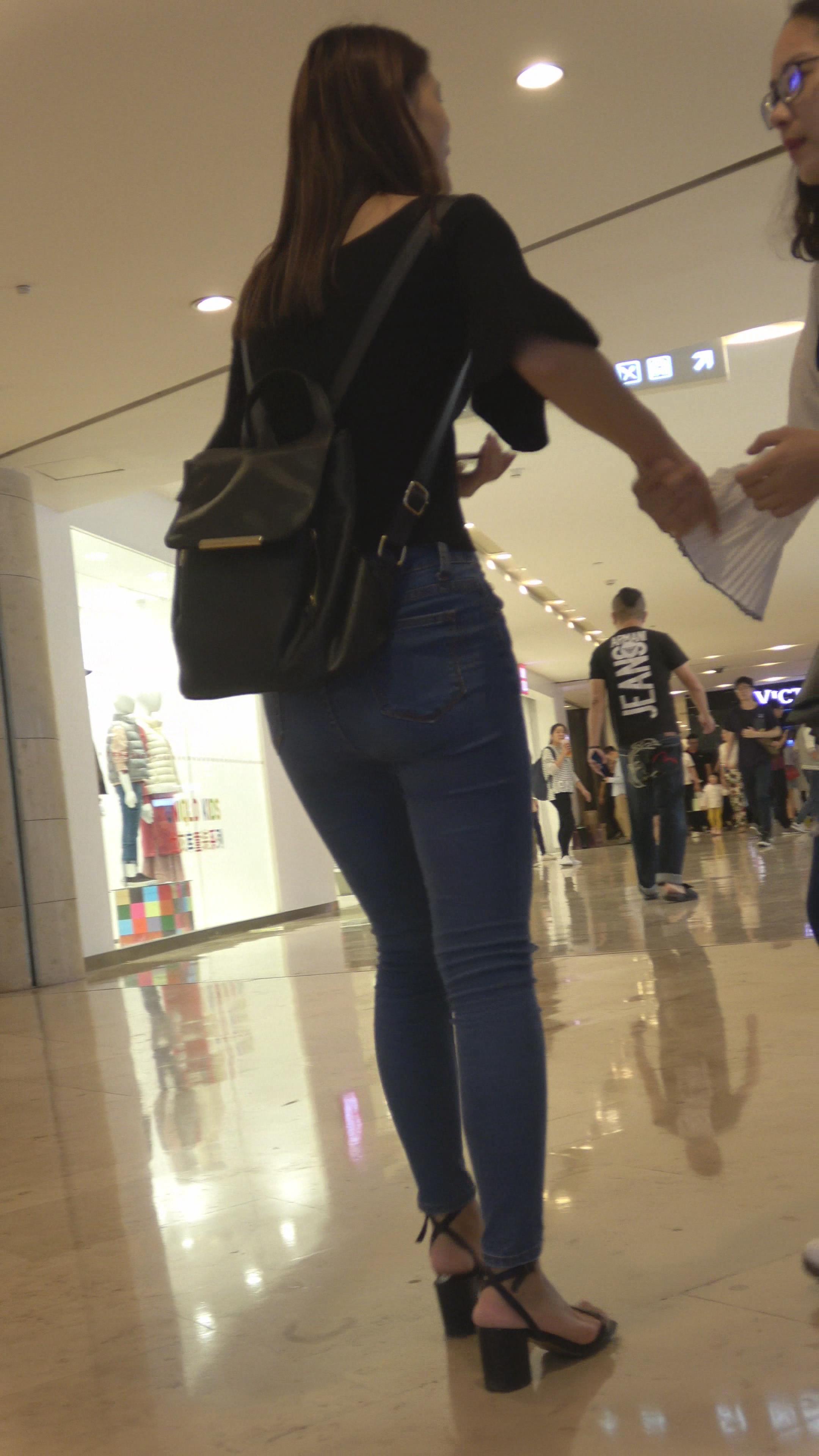 4K 街拍逛商场的紧身牛仔美女 编号3180