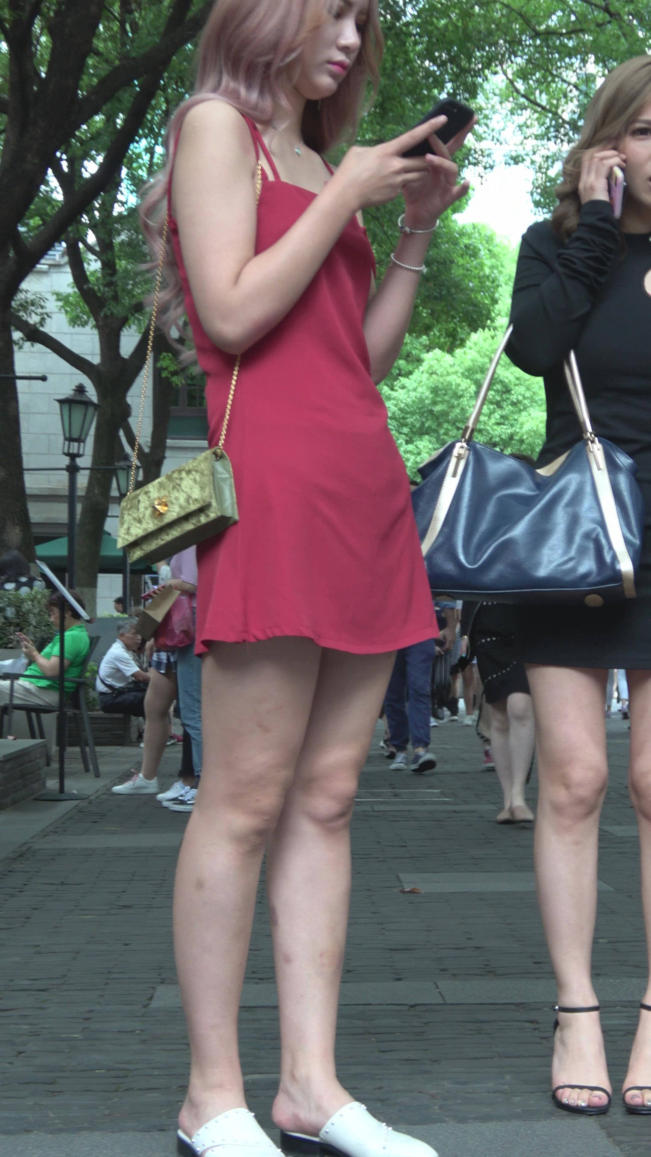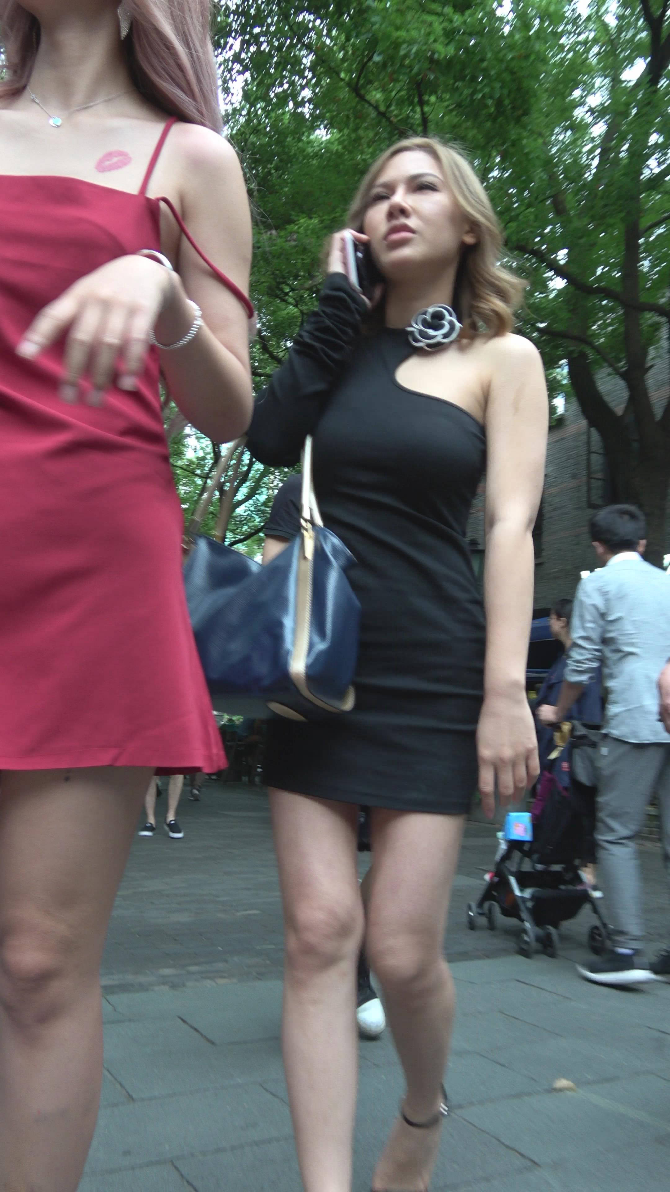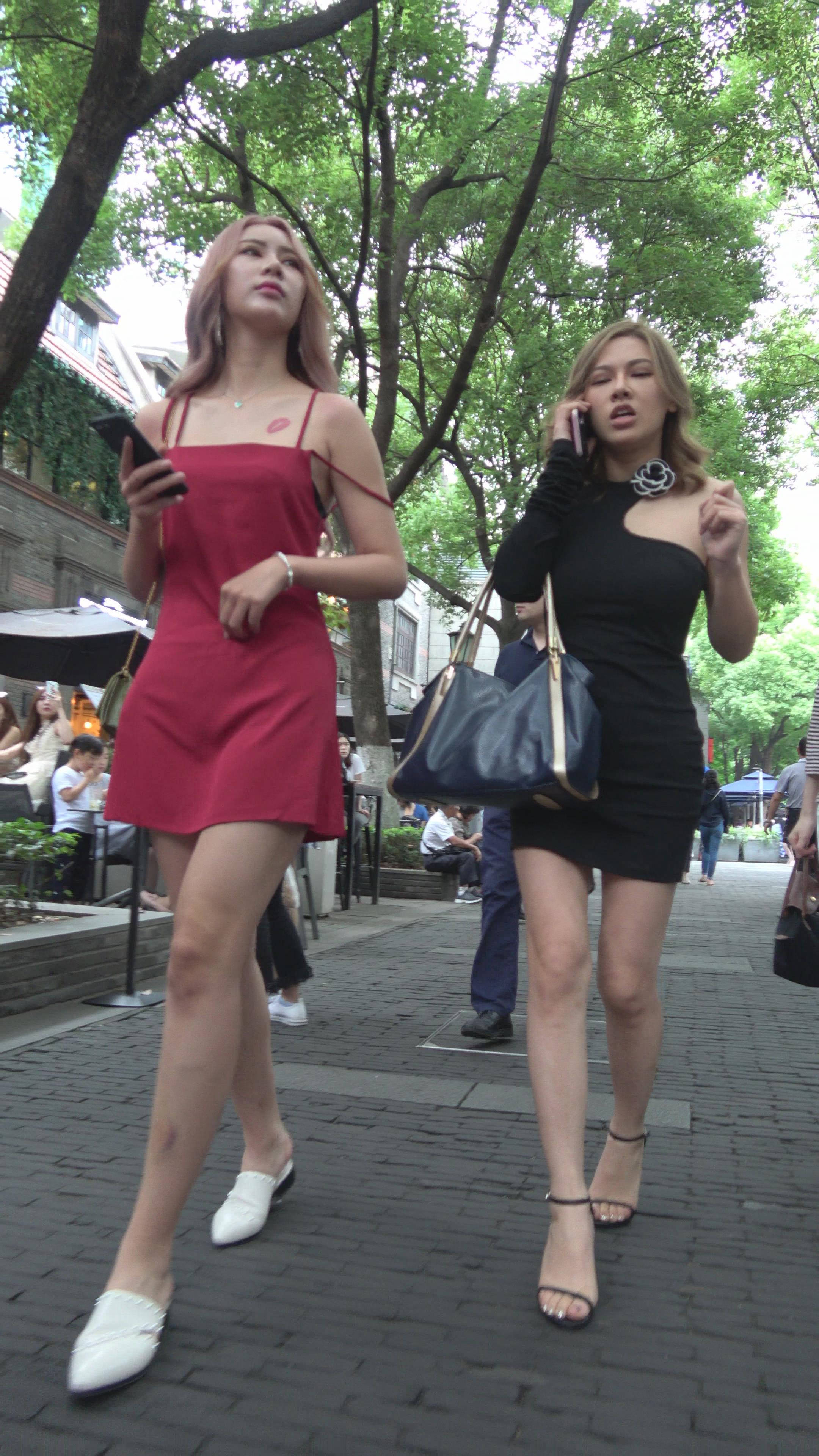 4K 街拍两位身材性感的连衣裙姐妹 编号7918