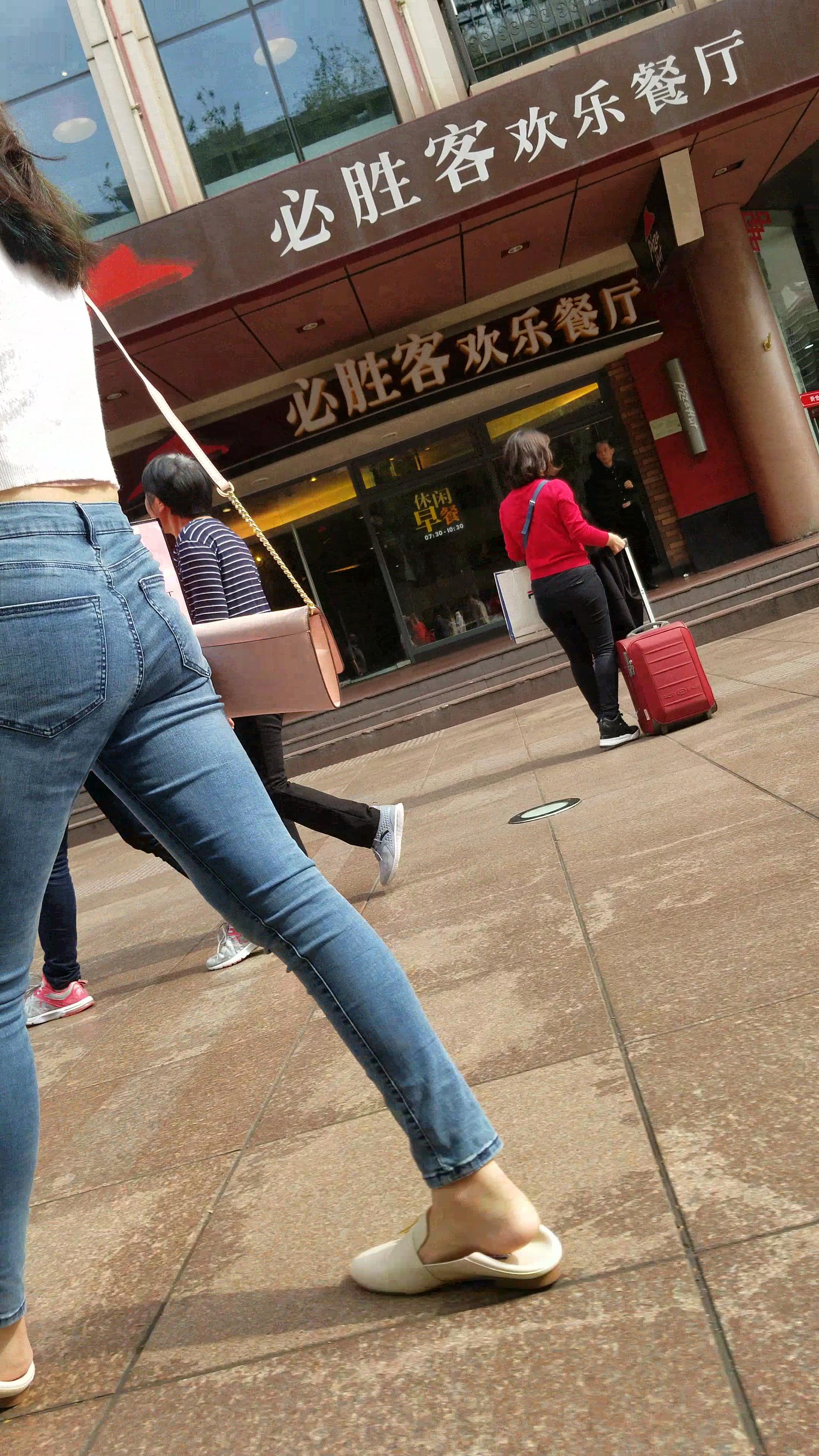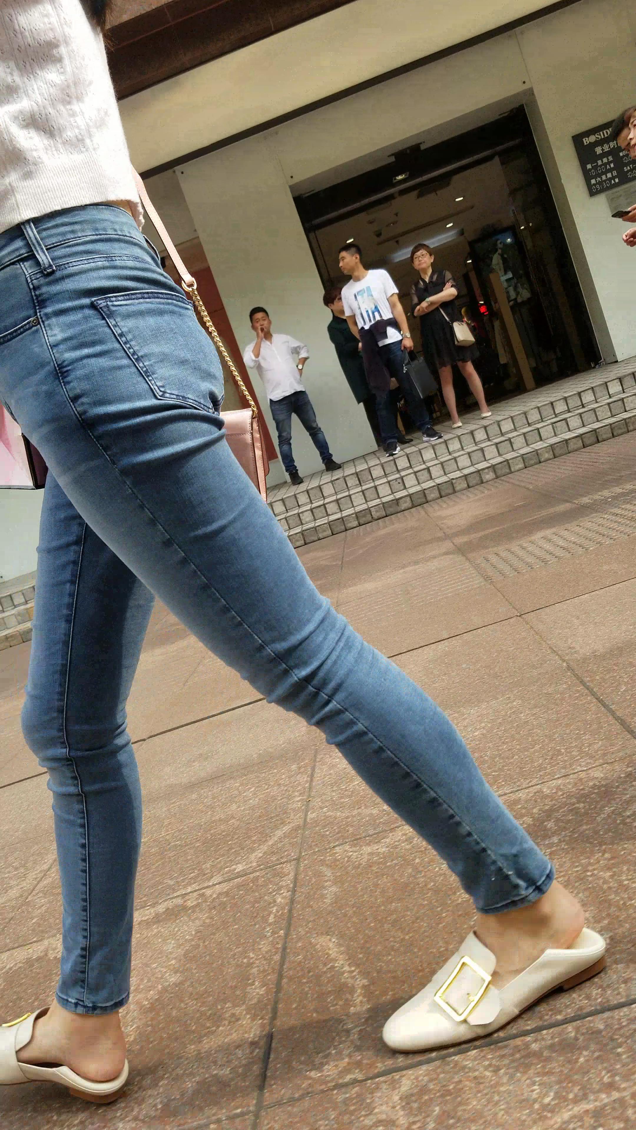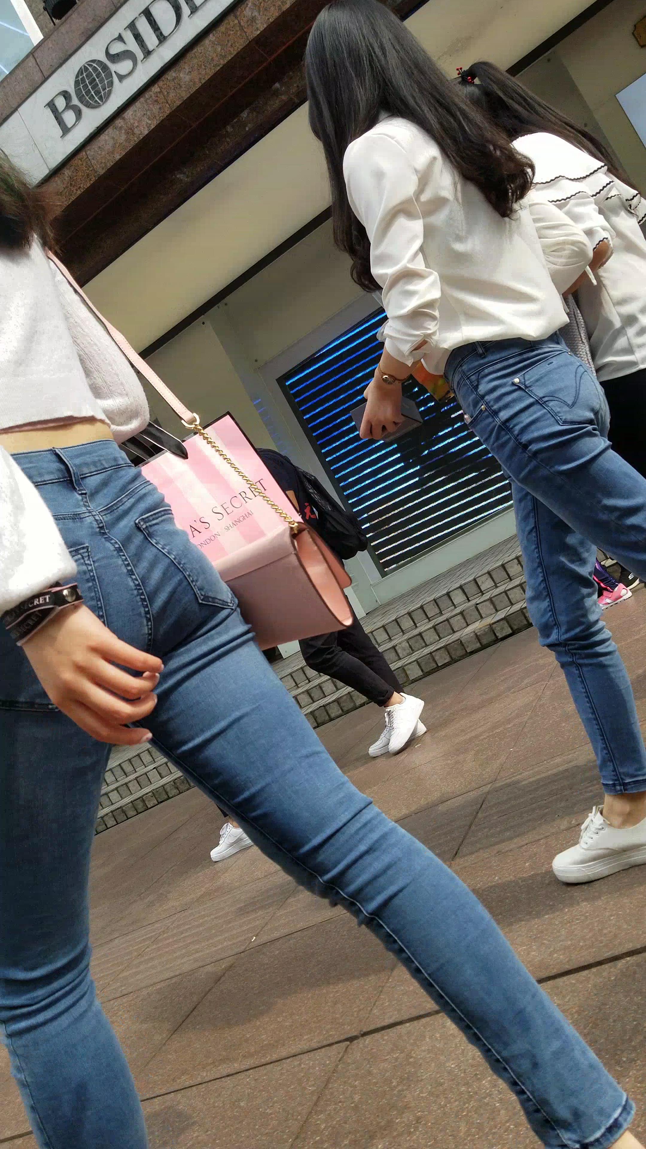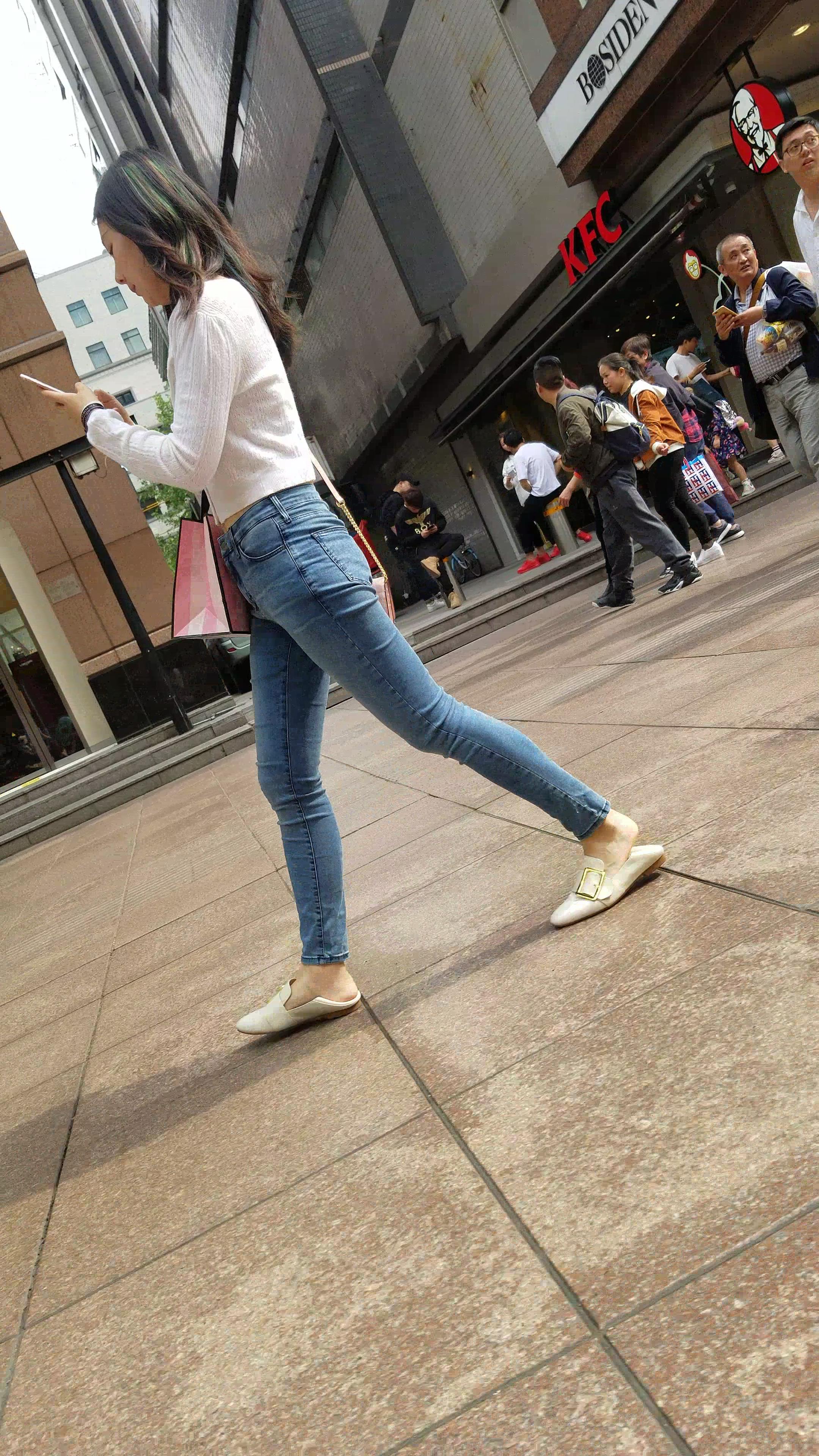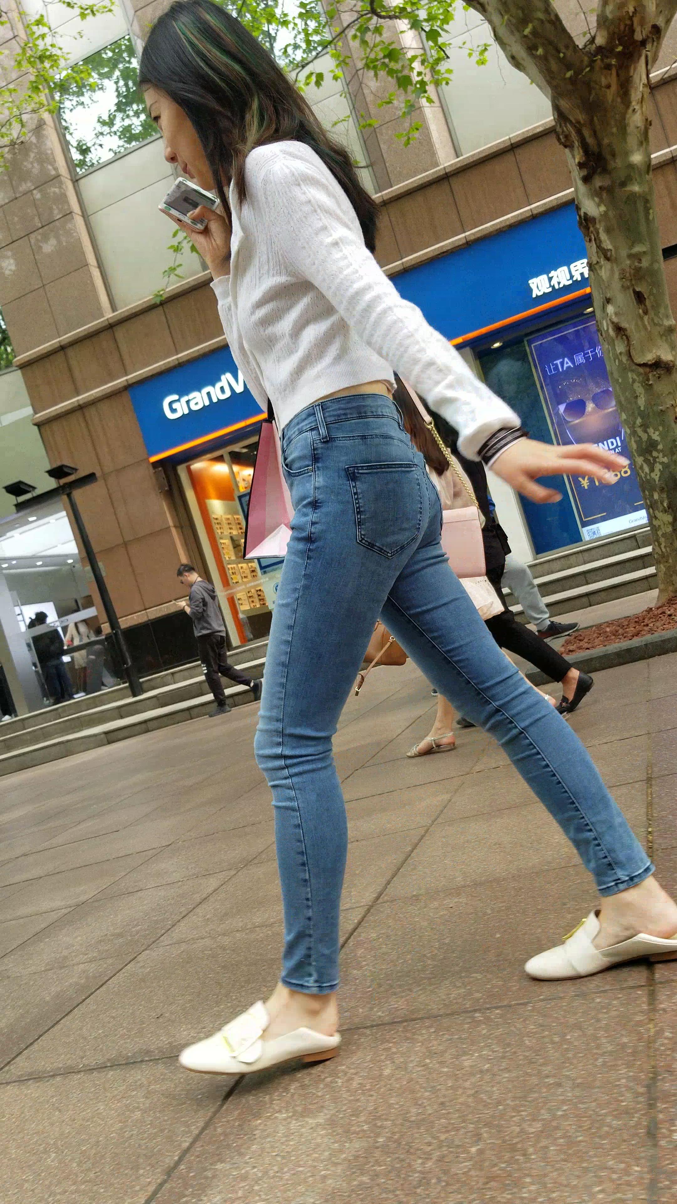 街拍白衣蓝色牛仔裤小清新美女姐姐 编号3198