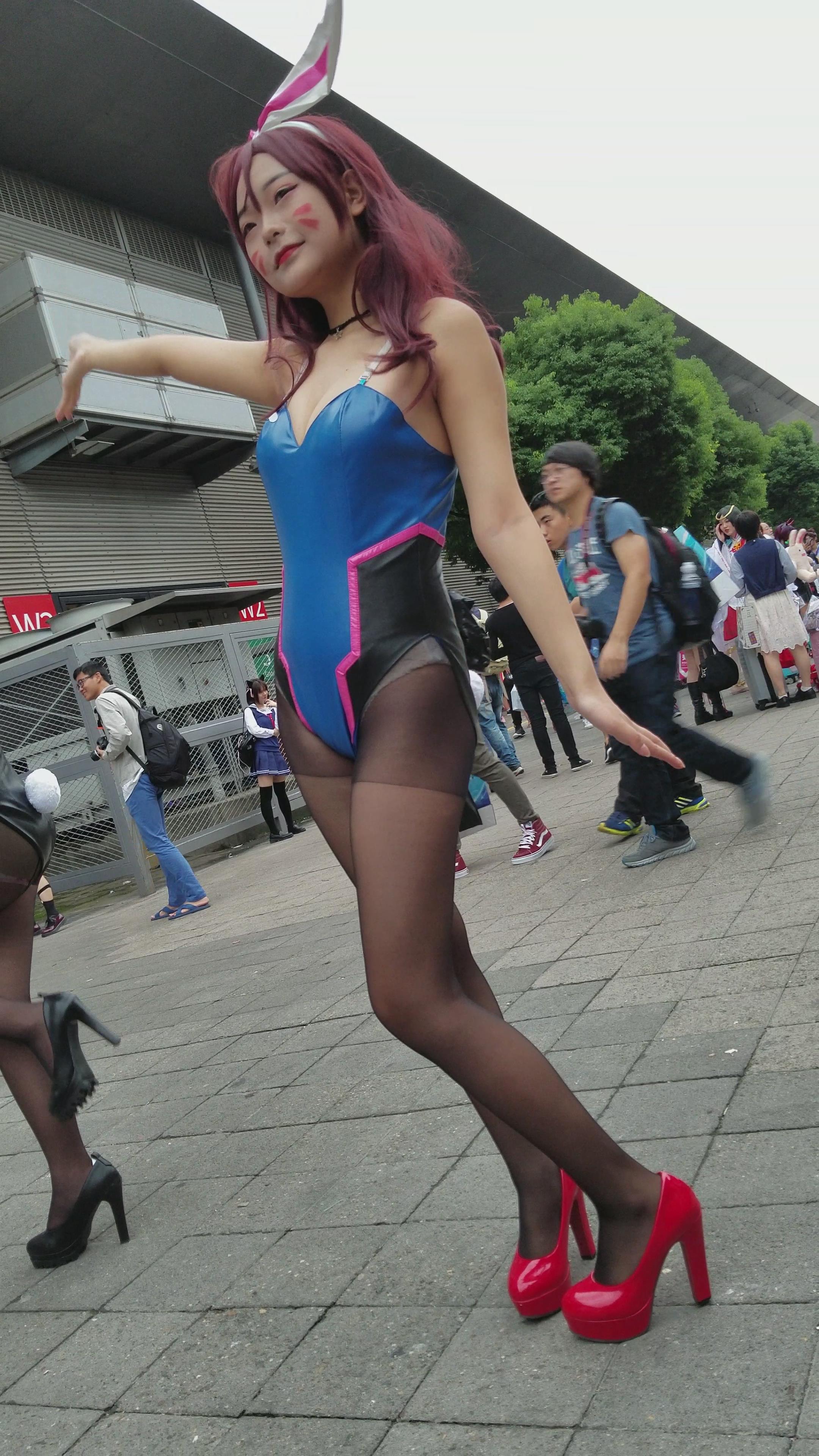 4K - 红色高跟鞋街拍黑丝cosplay的二次元少女 编号3208