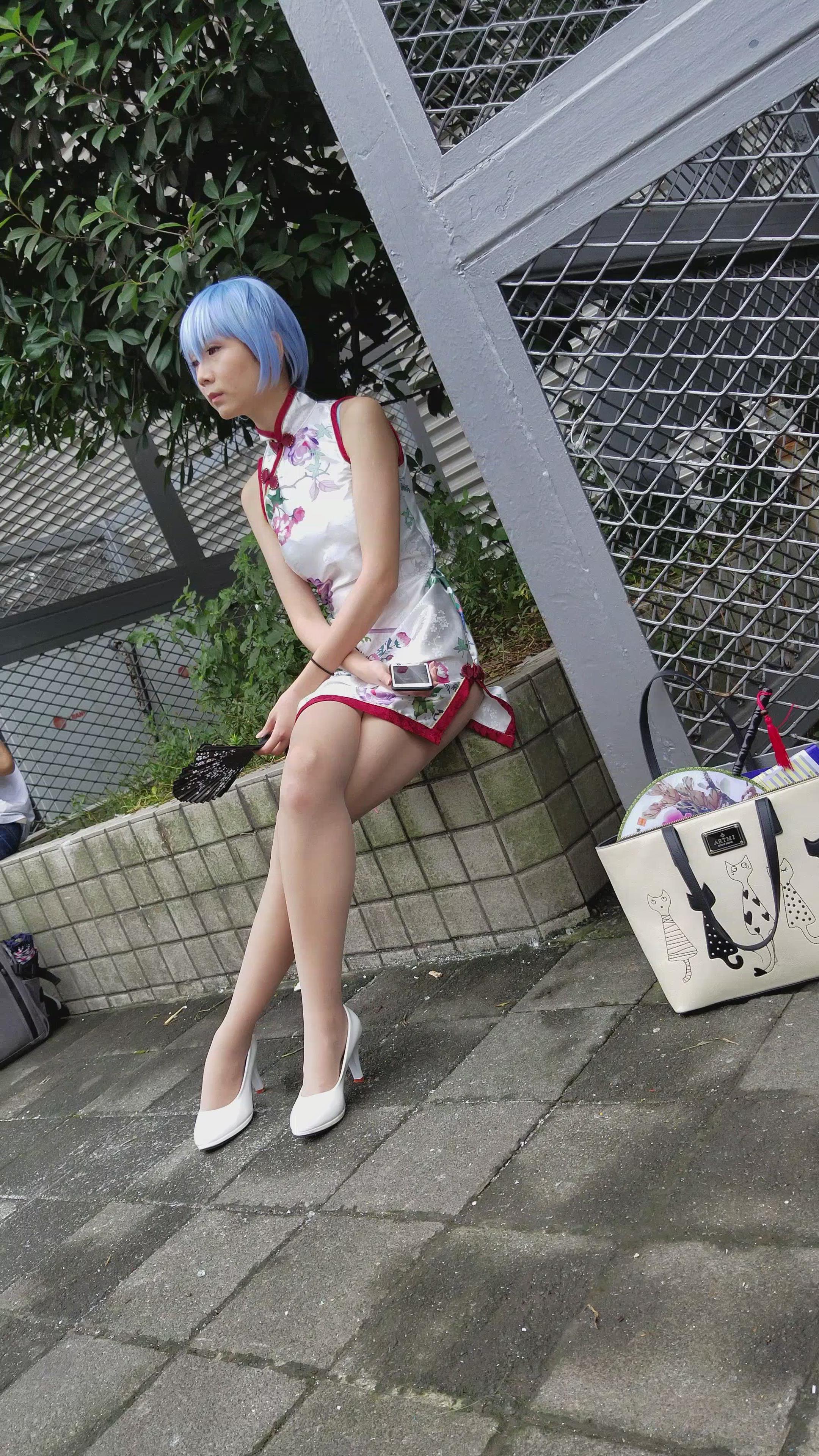 4K - 白色高跟鞋旗袍装cosplay的二次元少女 编号3217