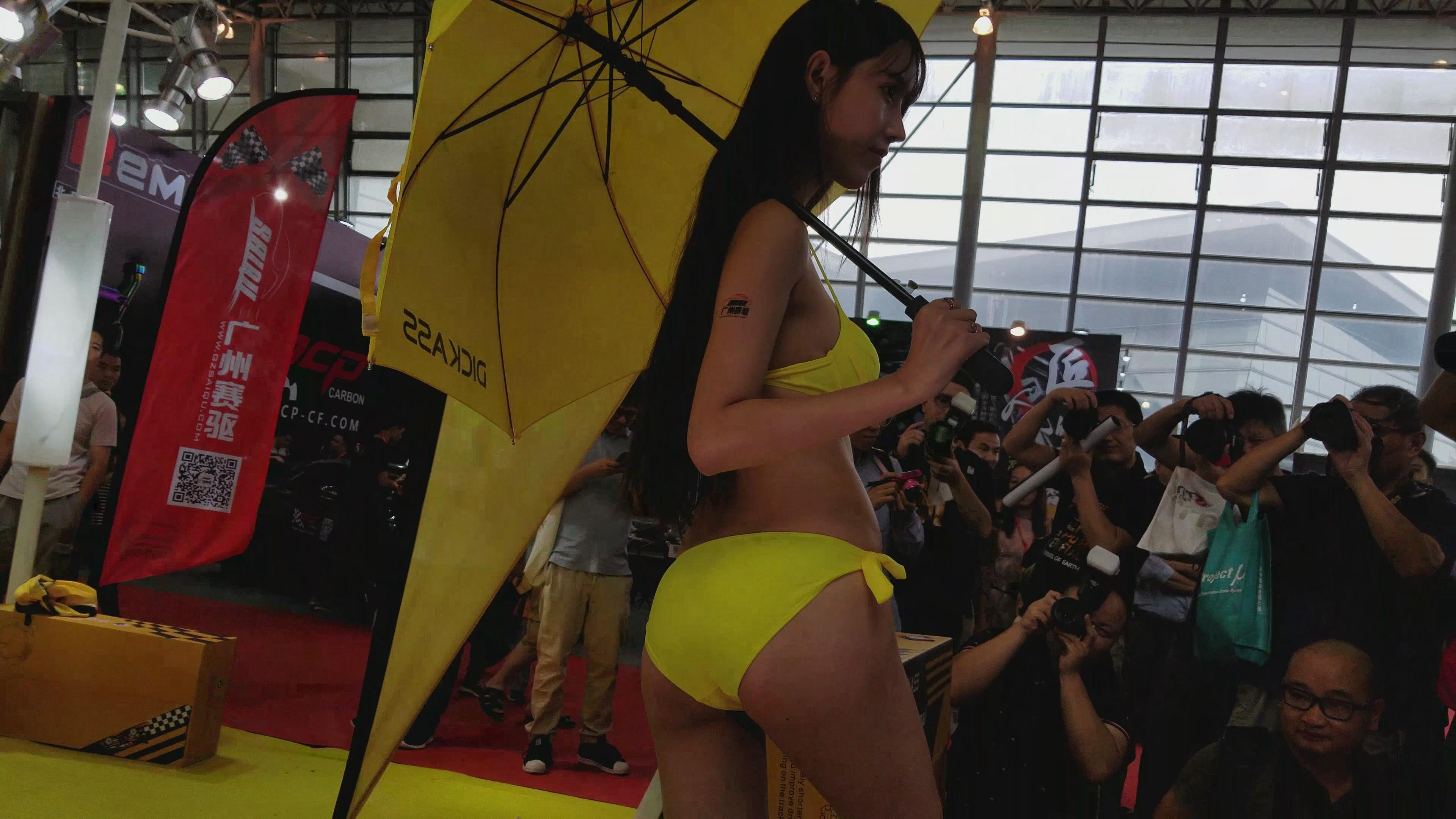 4k-黄色比基尼性感白嫩美女车模 编号3235
