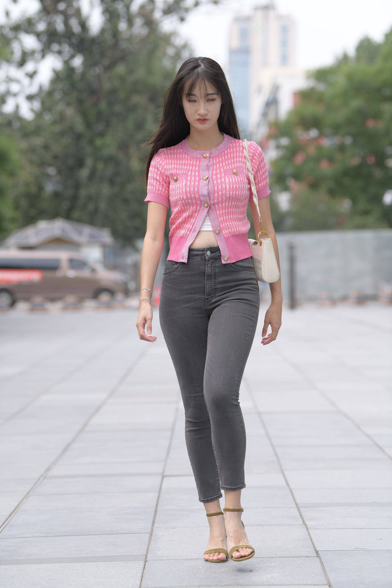 灰色牛仔裤美女 编号1054