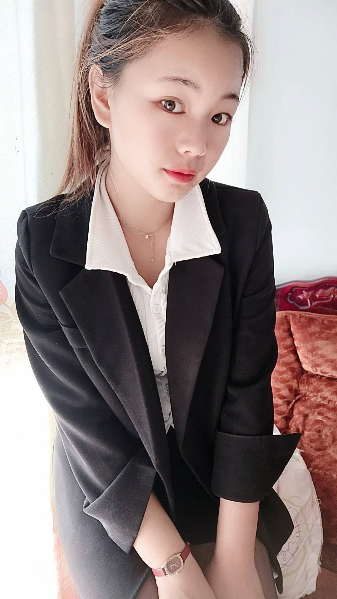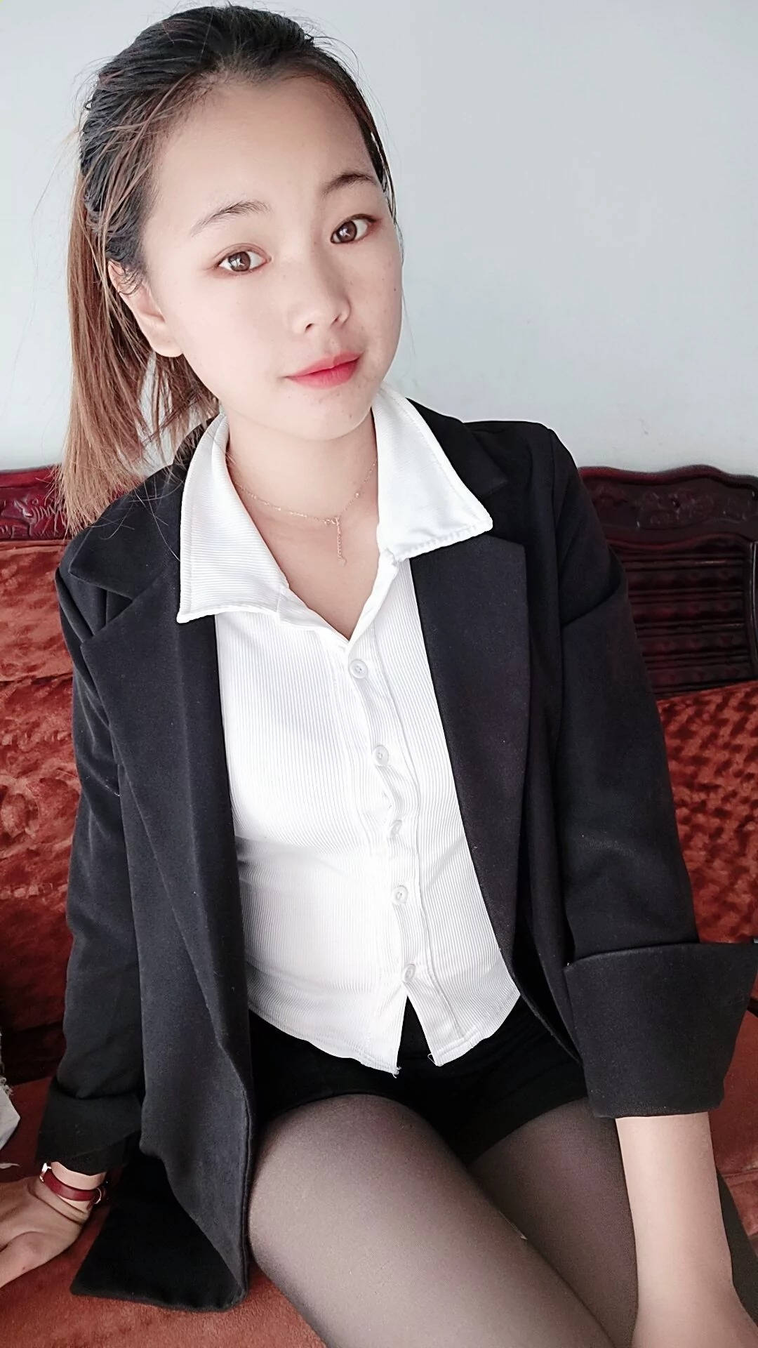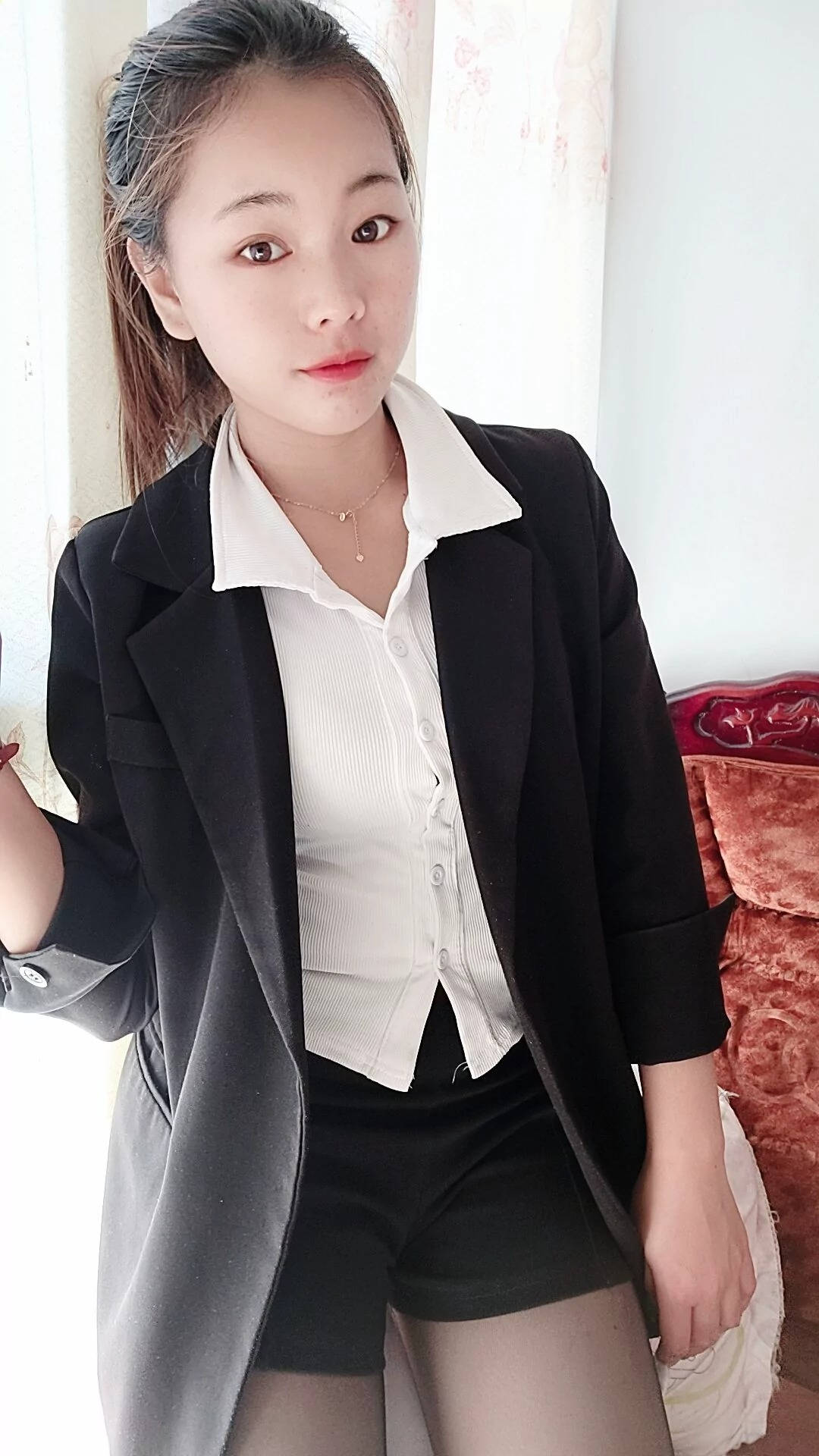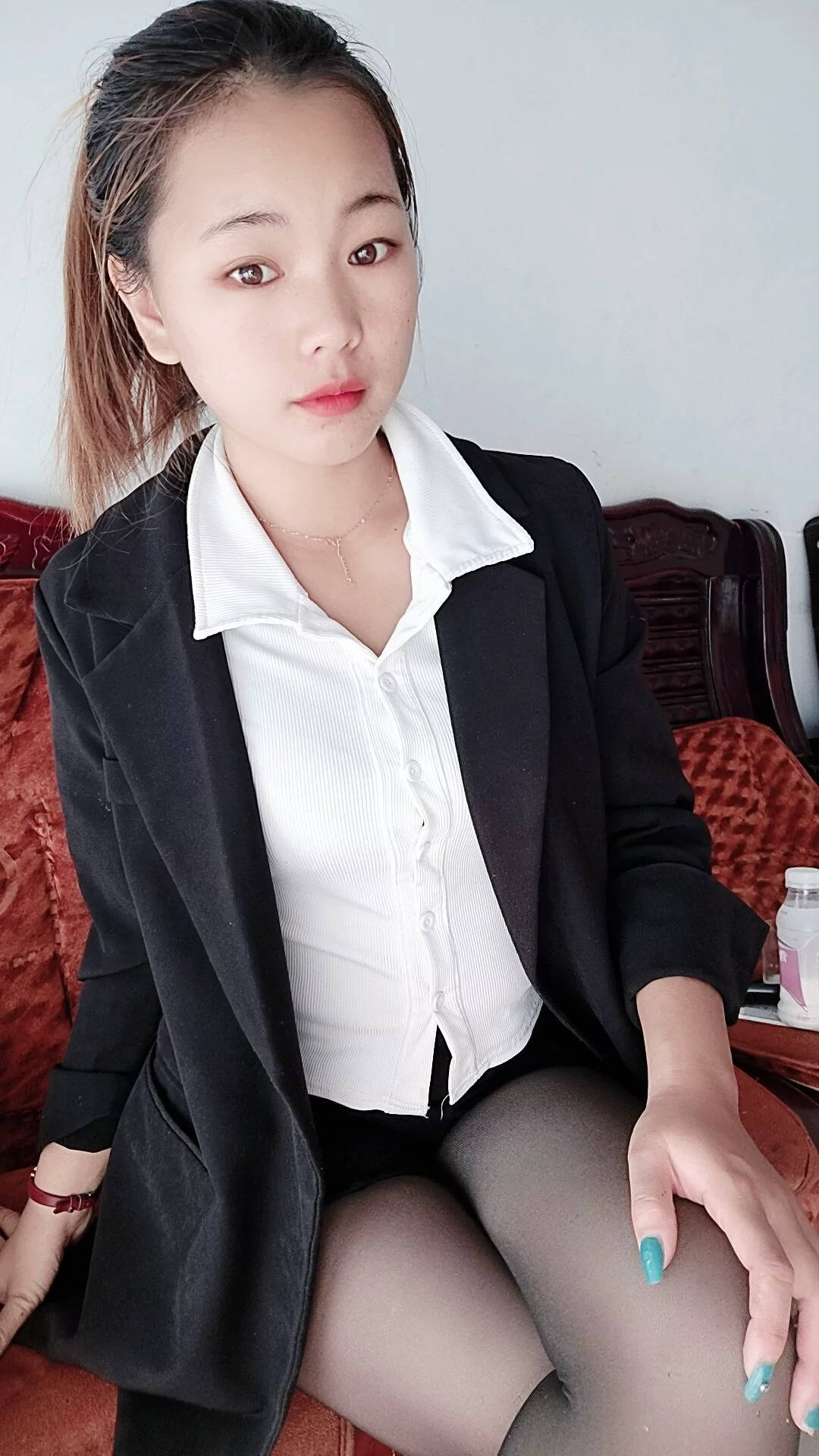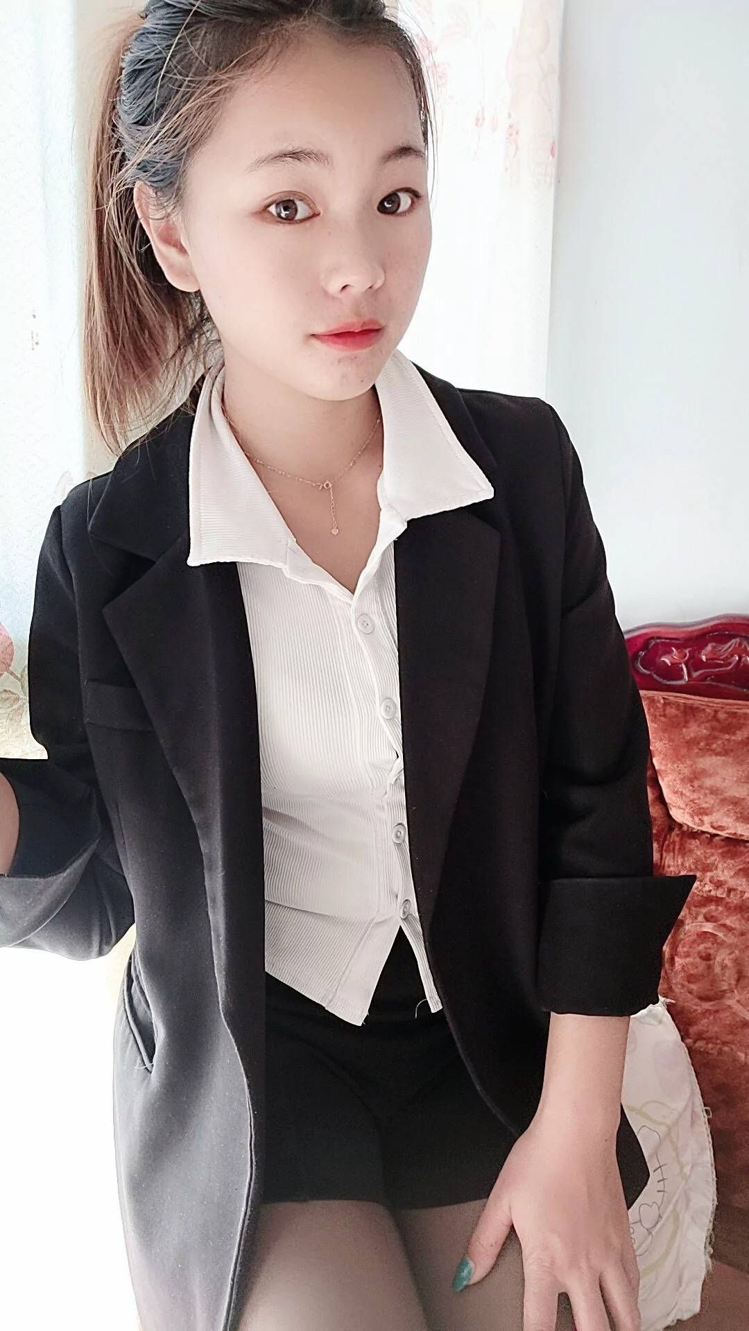 车站黑色包臀短裙肉丝红色高跟性感长腿美女SN153