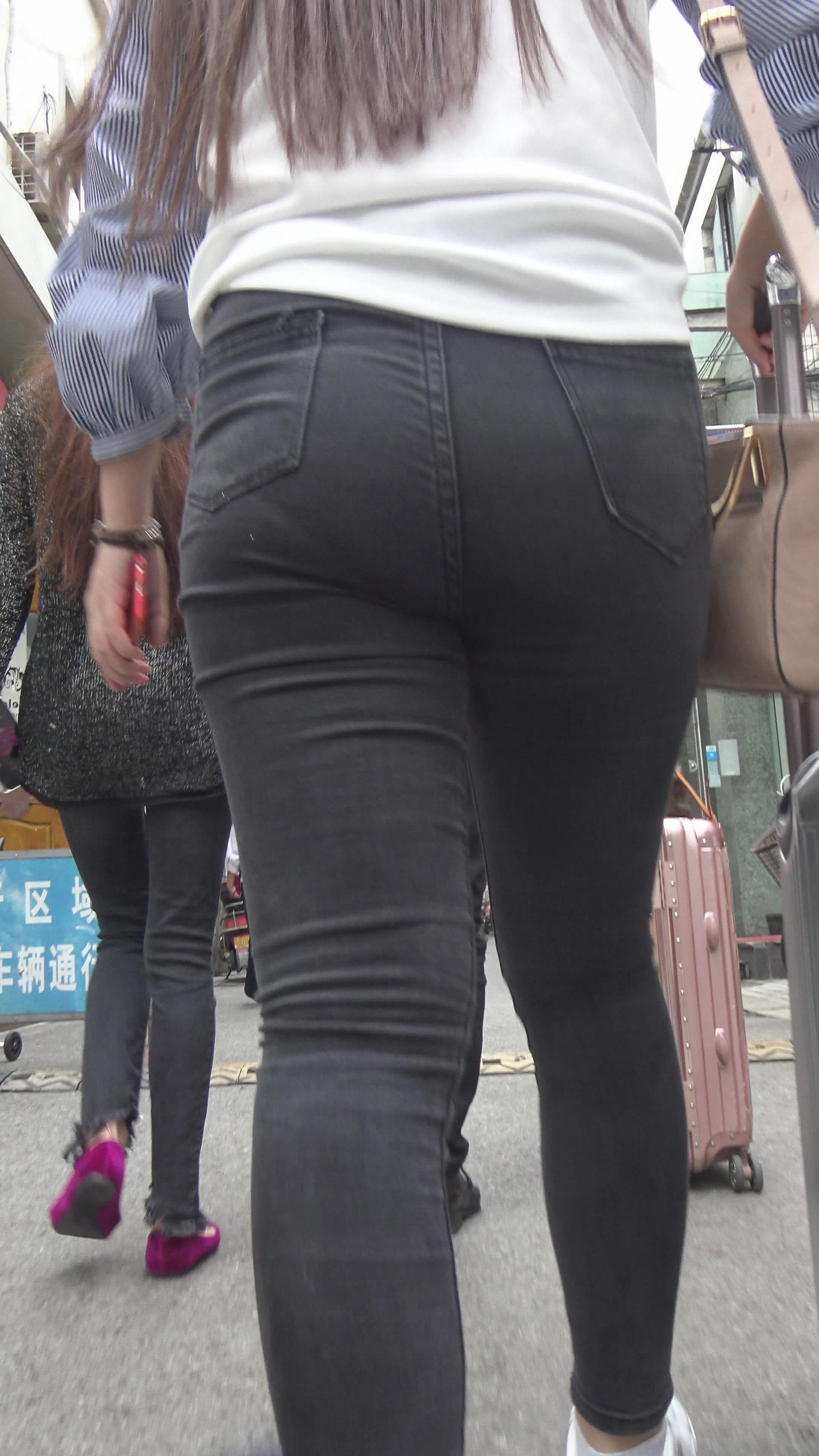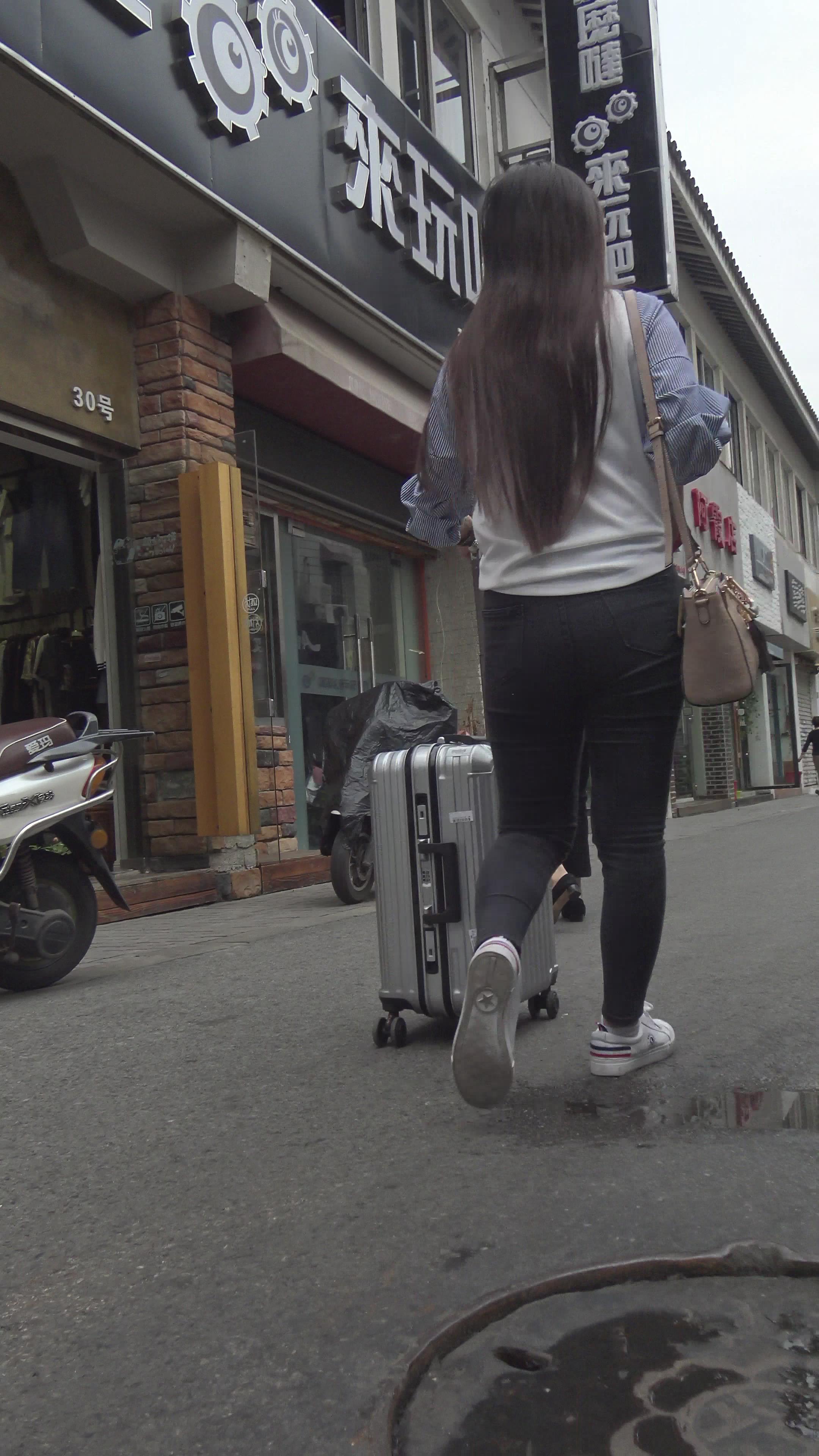 4k-跟拍性感黑色紧身裤丰臀美眉 编号3240