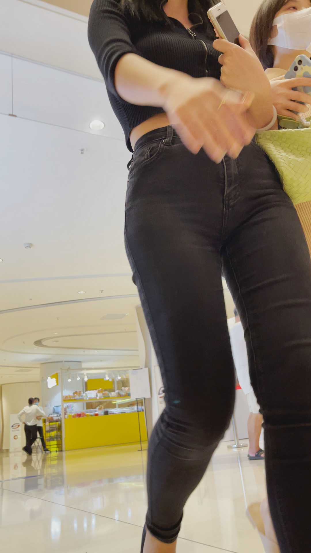 A23灰色紧身牛仔裤让闺蜜陪她去买眼镜