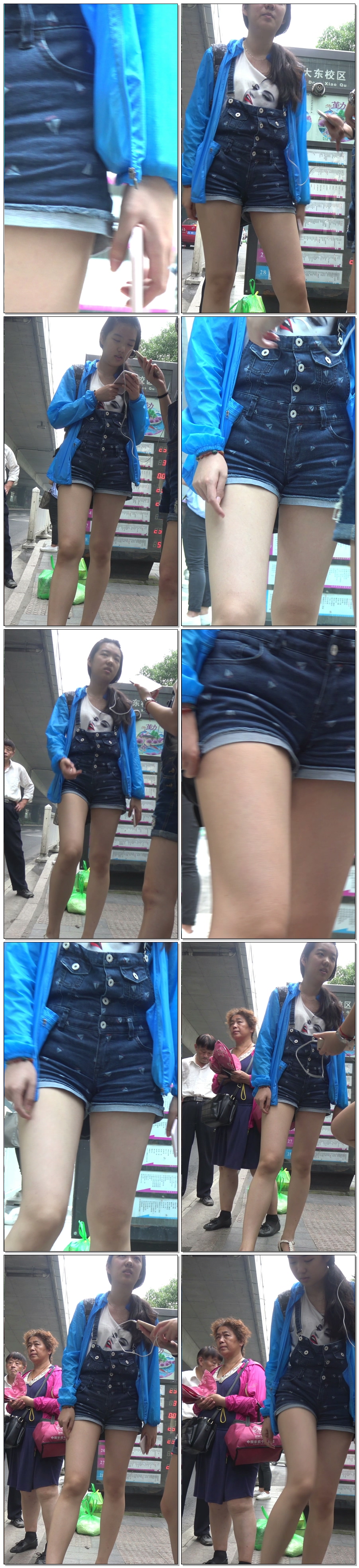 B1517公交站牛仔热裤美三角