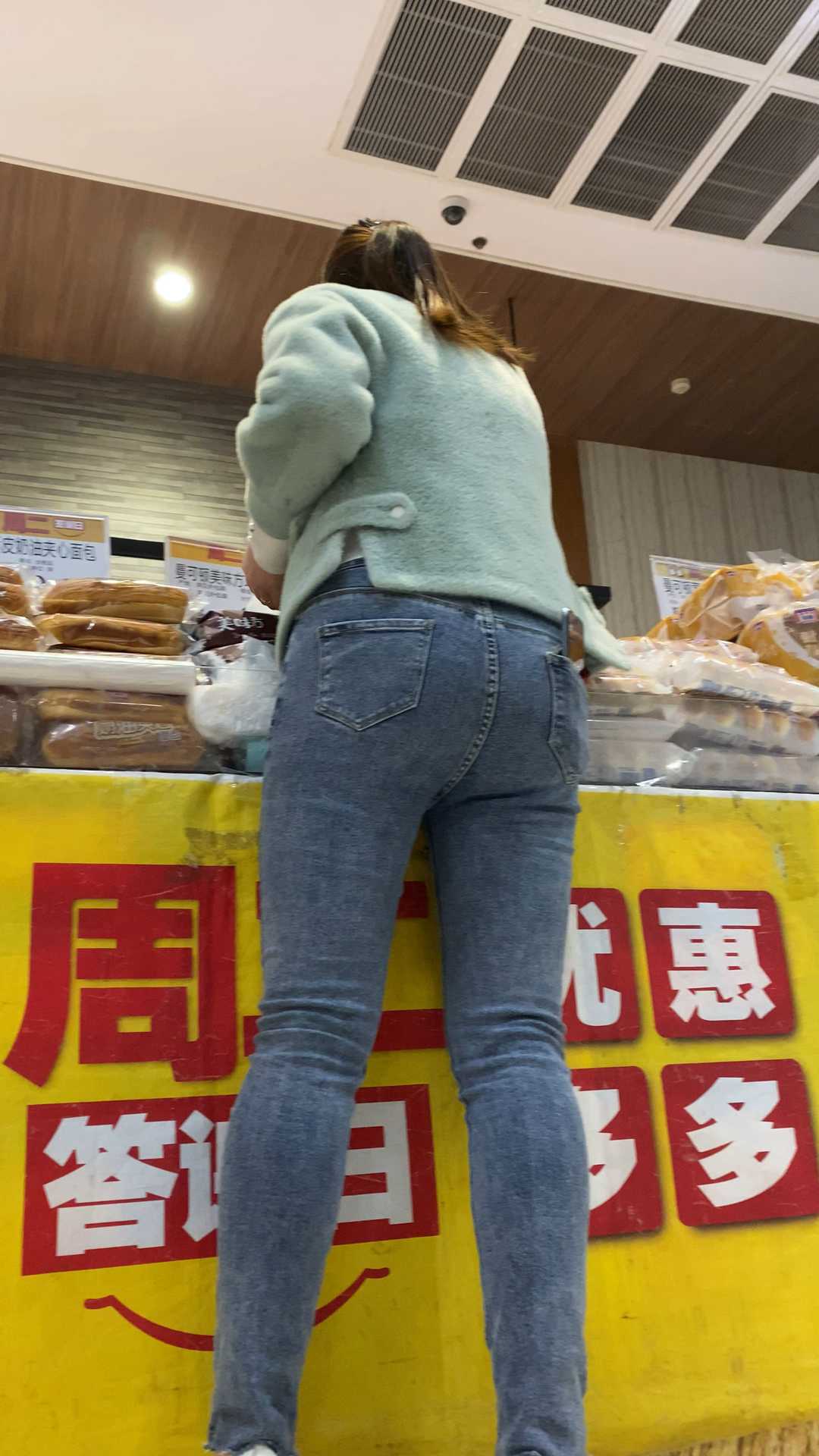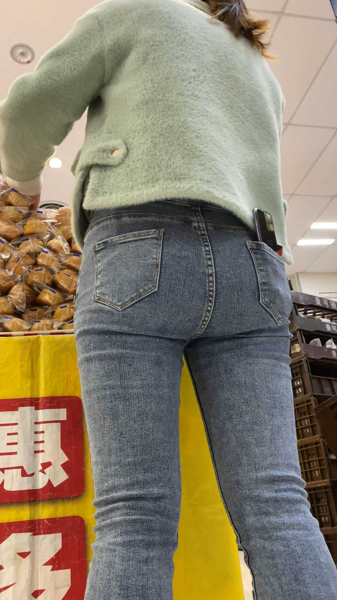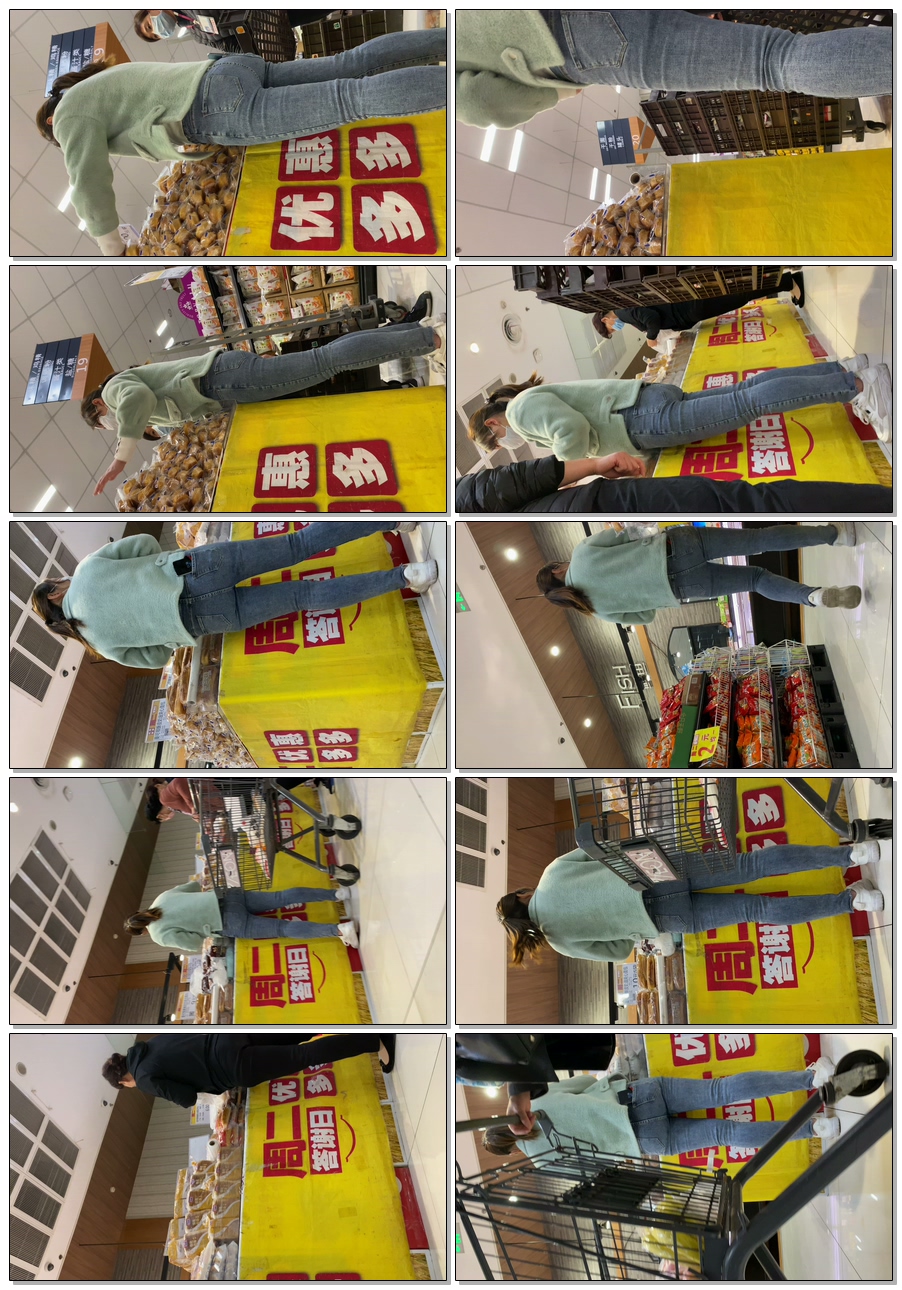 B1527商场包臀灰牛仔裤妹子