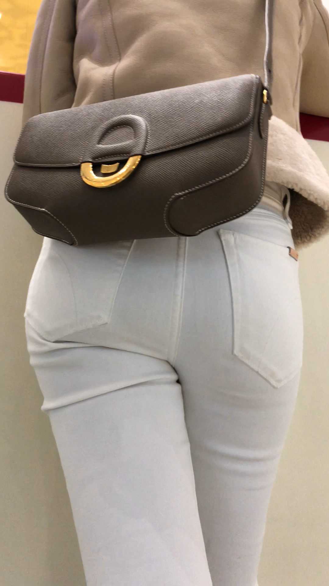 B1532商场大丰臀白裤凸三角少妇