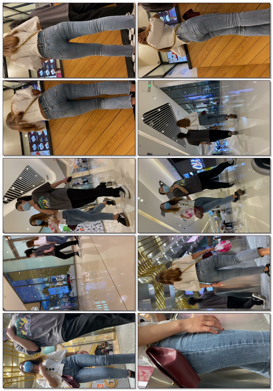 B1550商场紧身包臀灰牛仔妹子