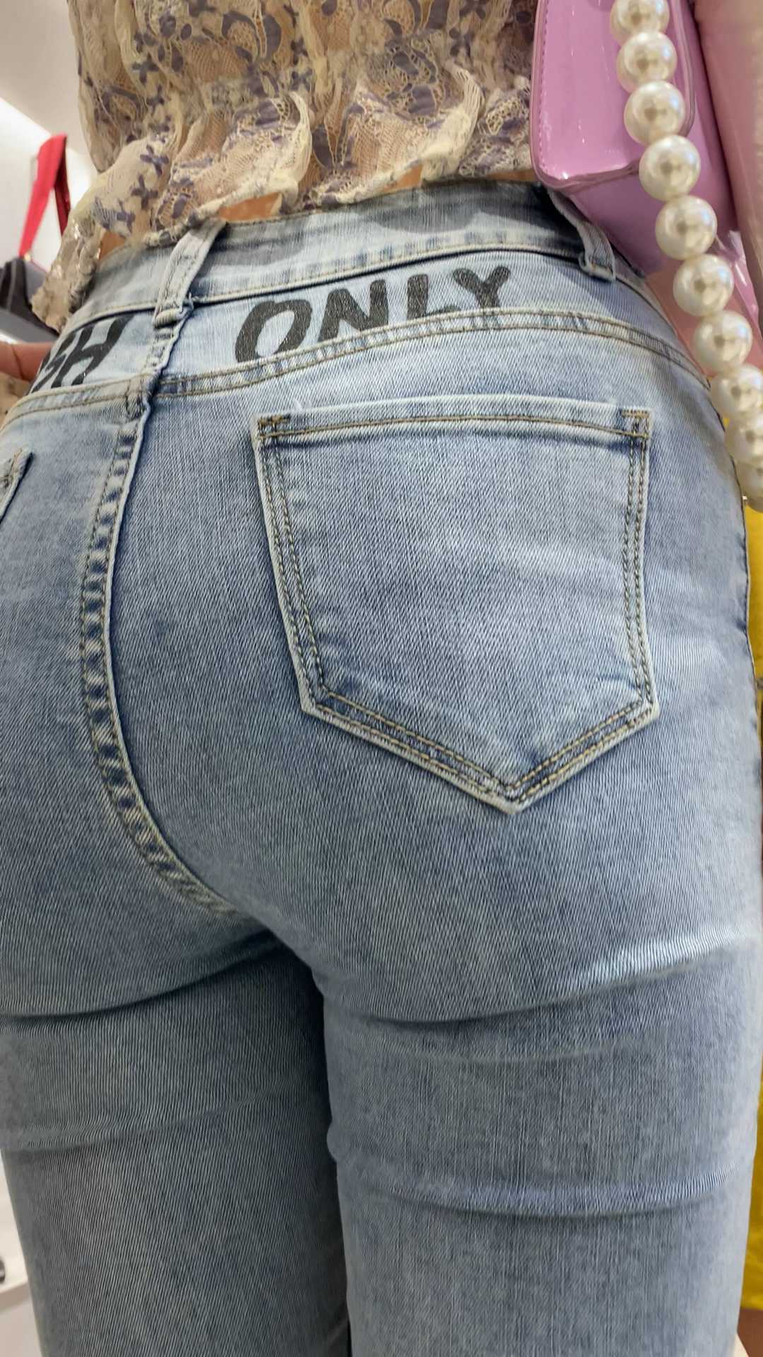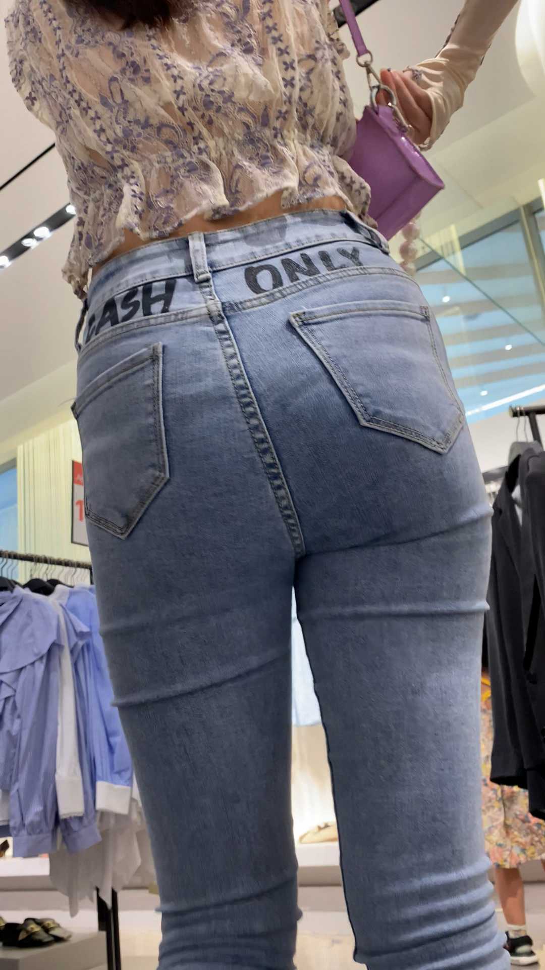 B1558商场紧身灰牛仔露肚脐妈咪