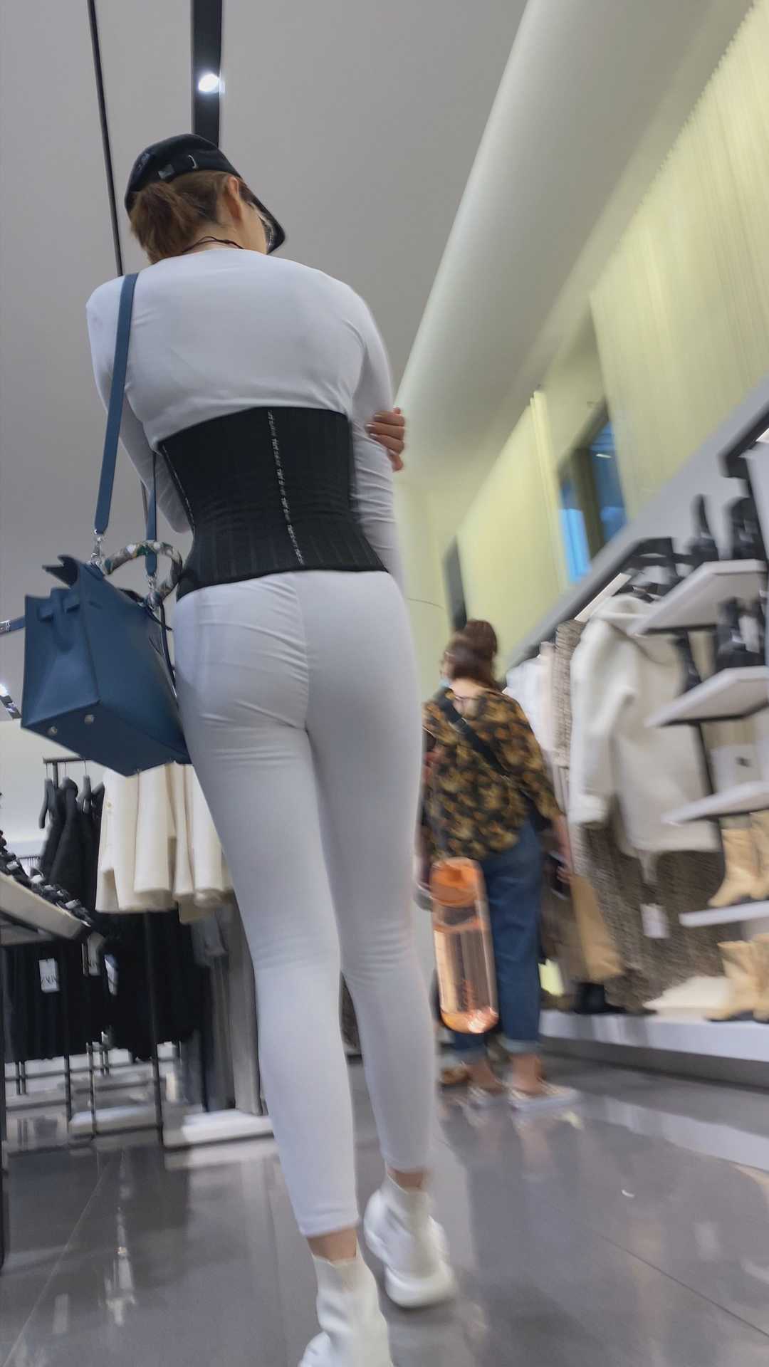 B919白色瑜伽裤紧臀少妇一般人不敢穿