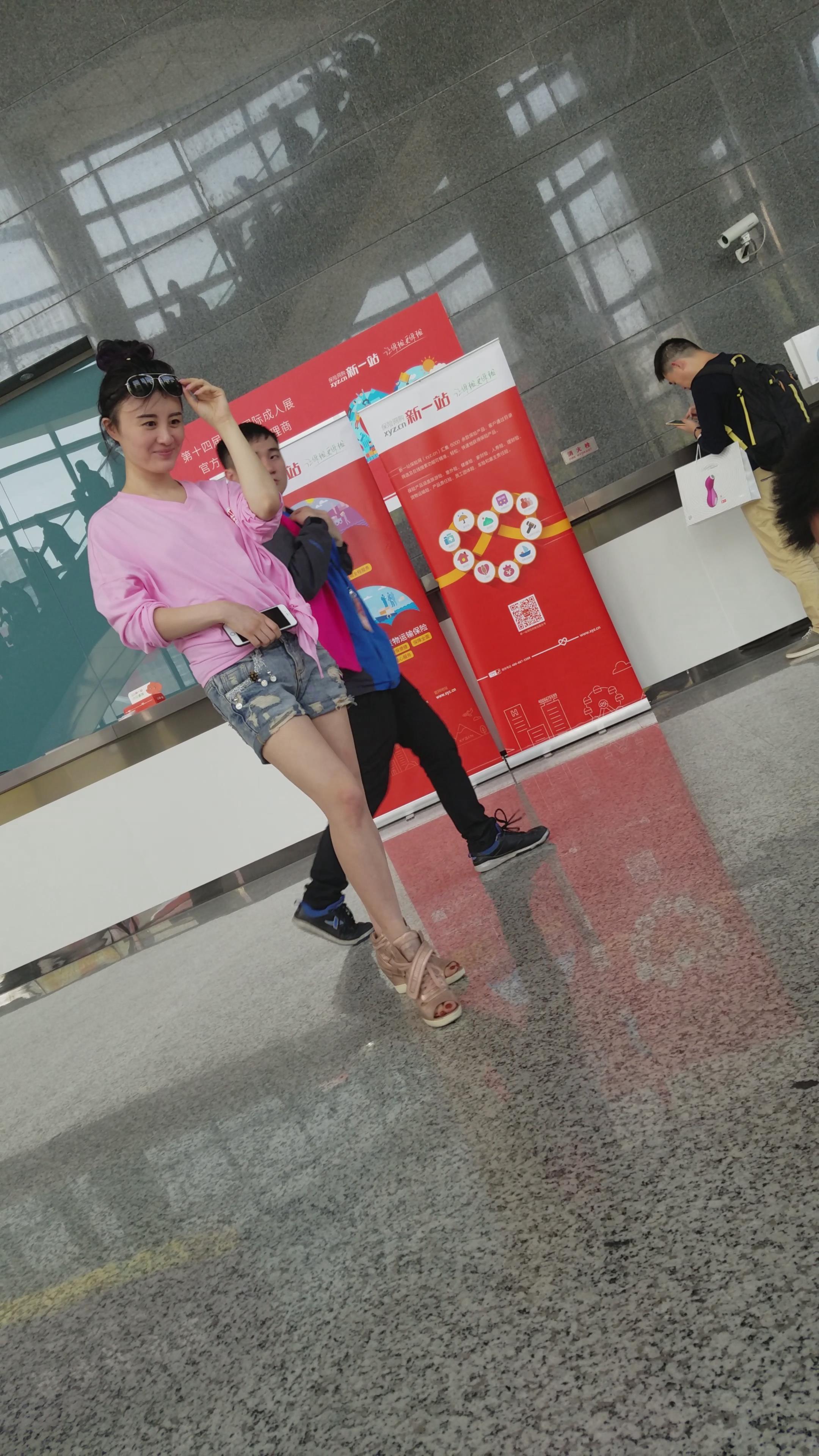 4k-粉色T恤衫牛仔热裤白皙美腿姐姐 编号3264