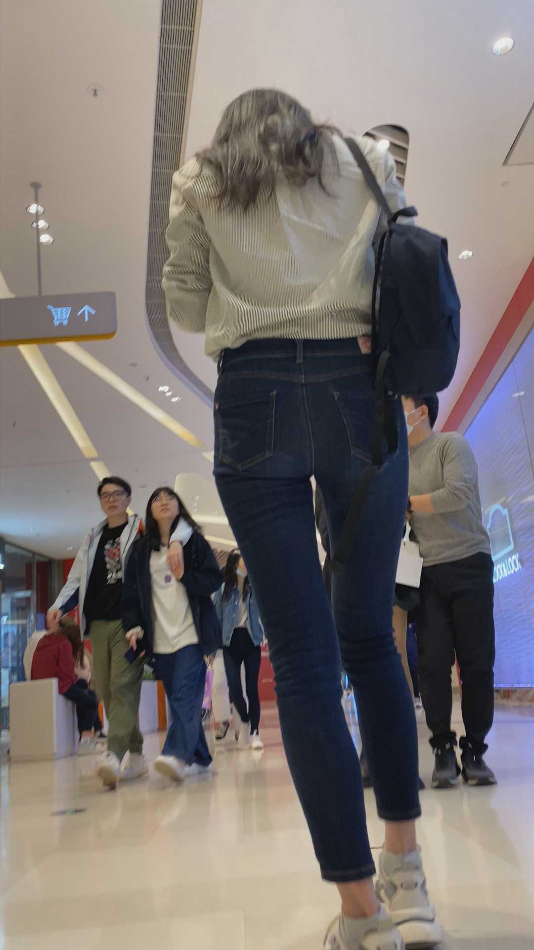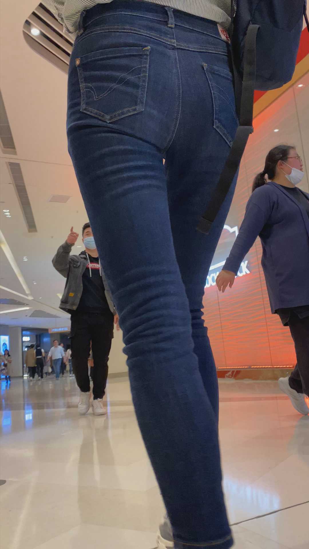 B953商场包臀蓝色牛仔裤少妇