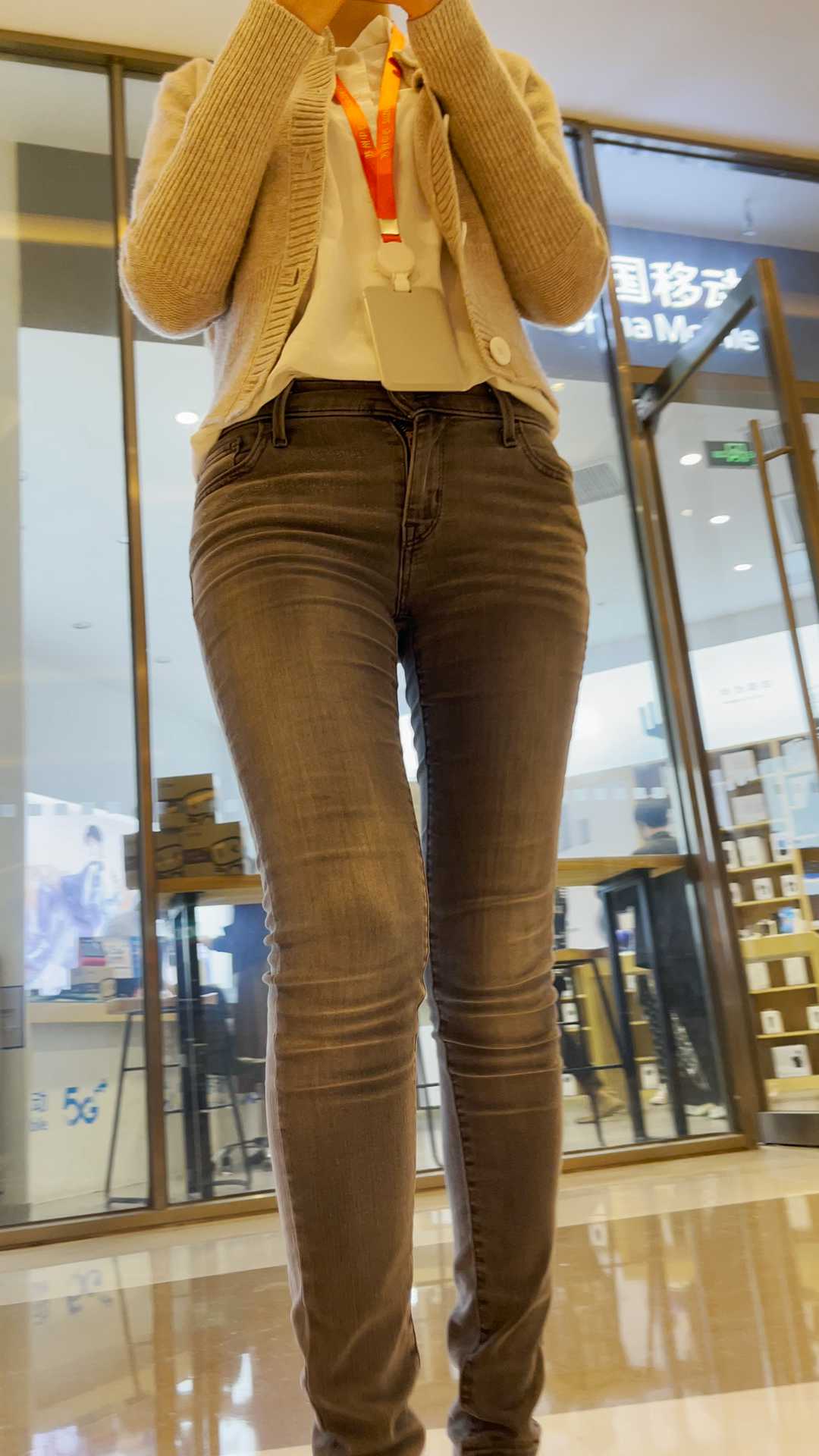 B962商场灰牛仔裤宽大金三角