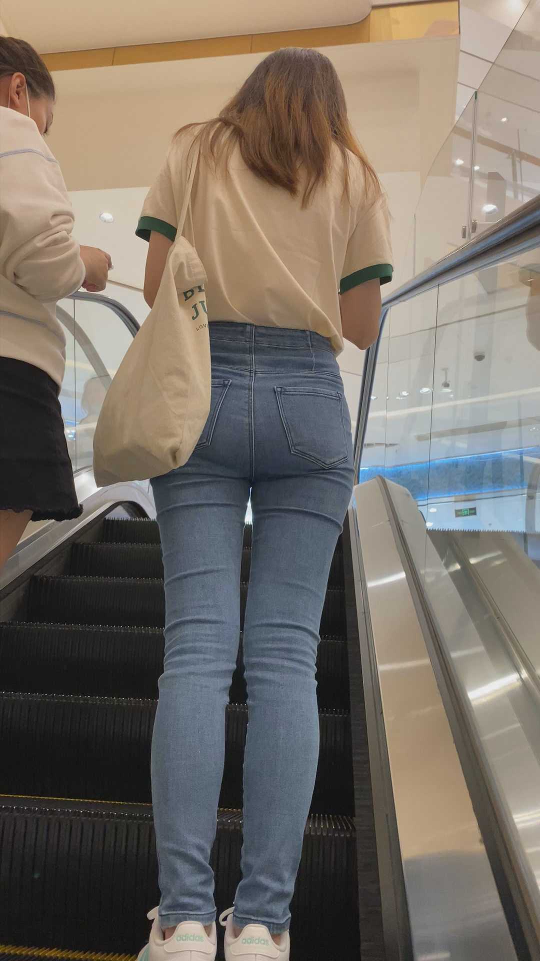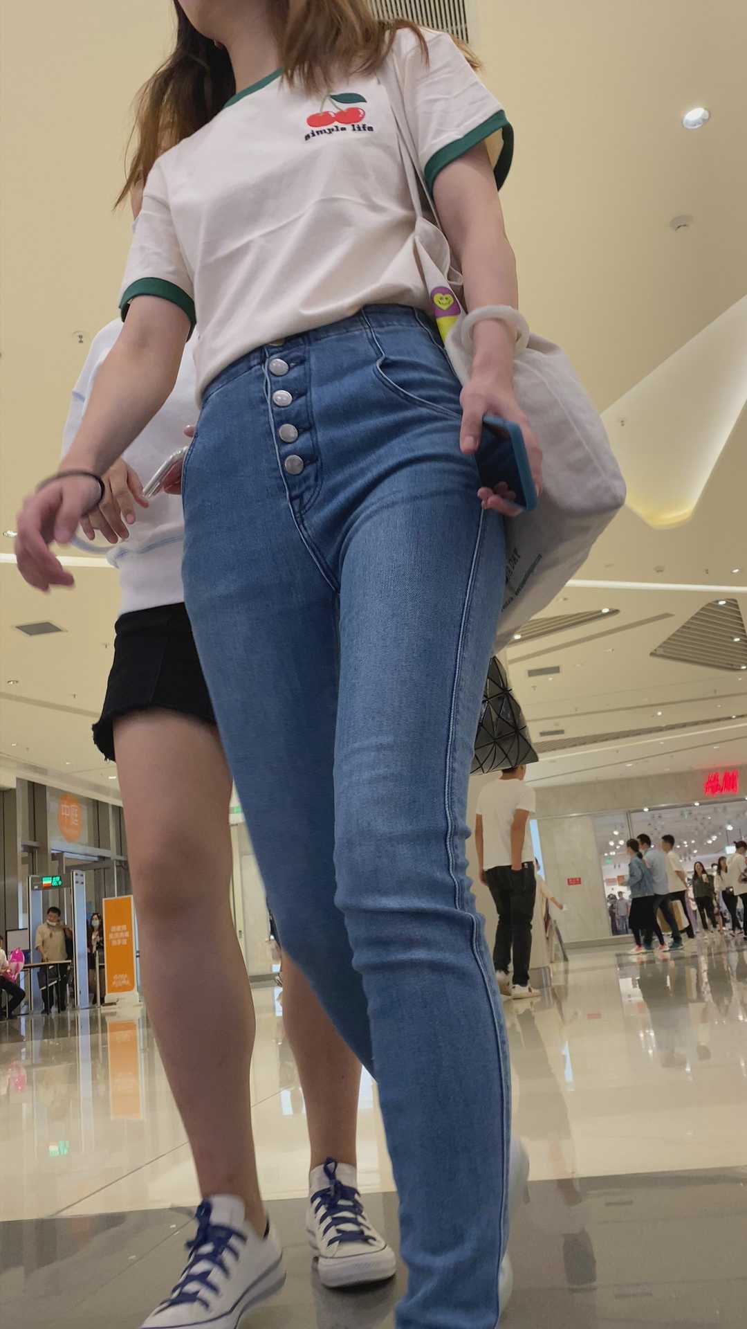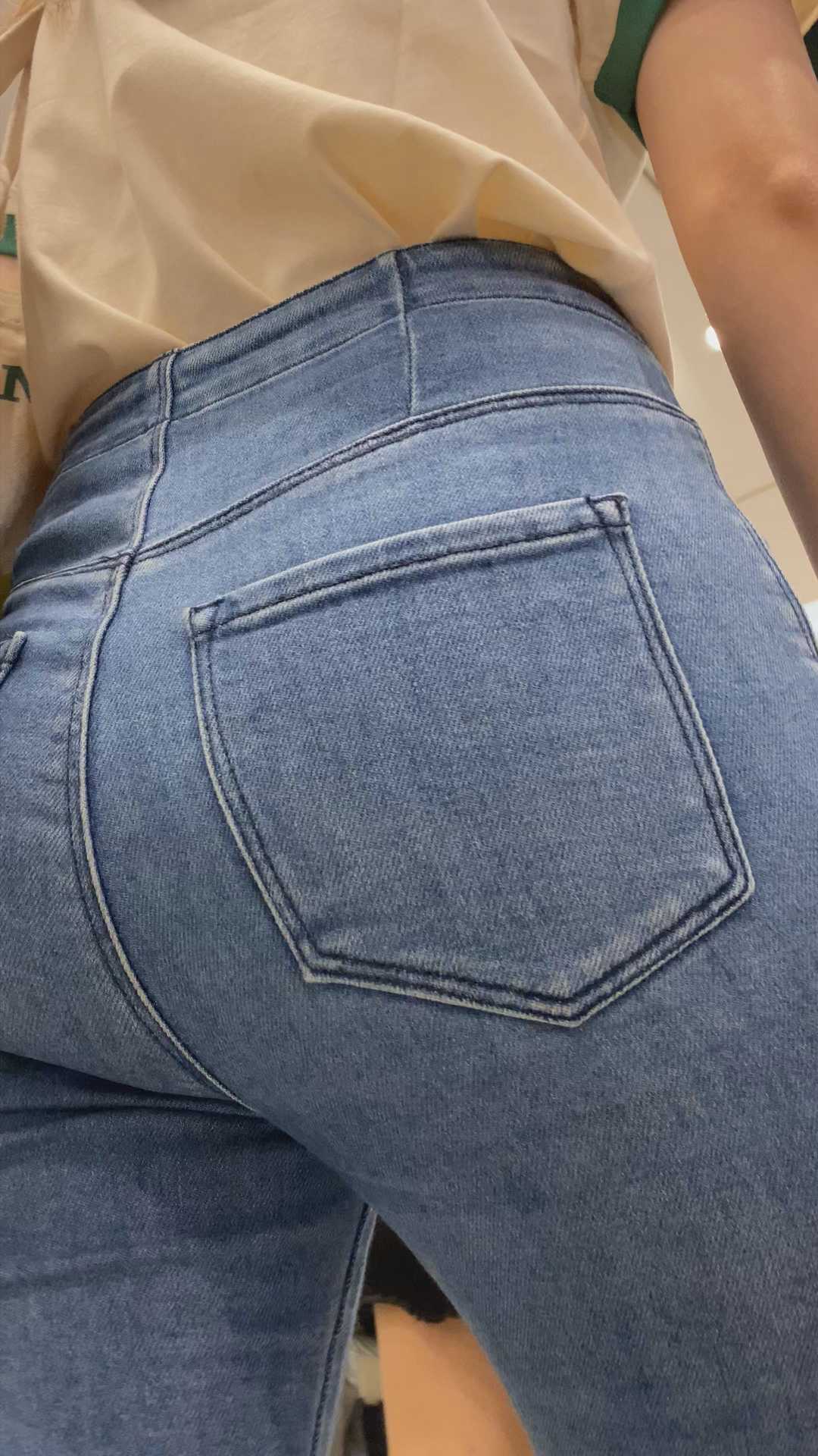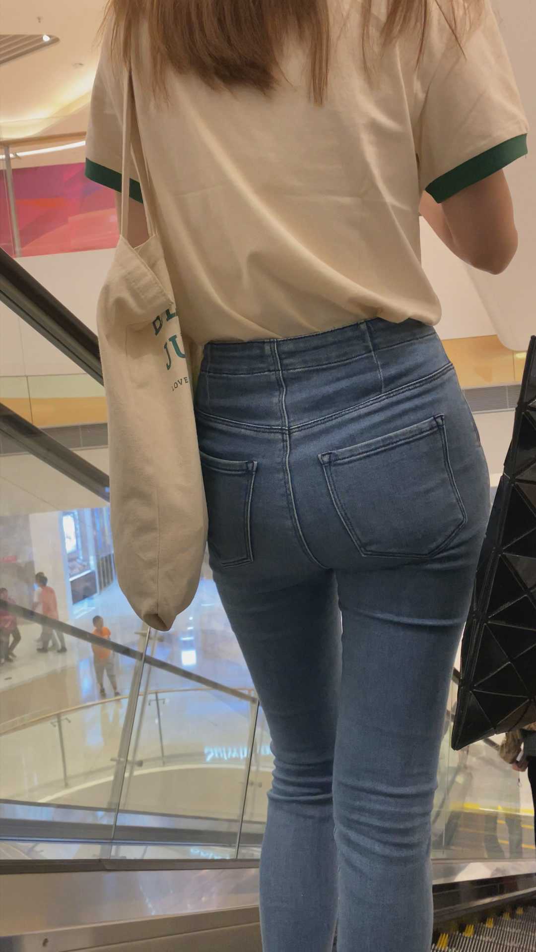 B976商场紧身灰牛仔紧臀小姐姐