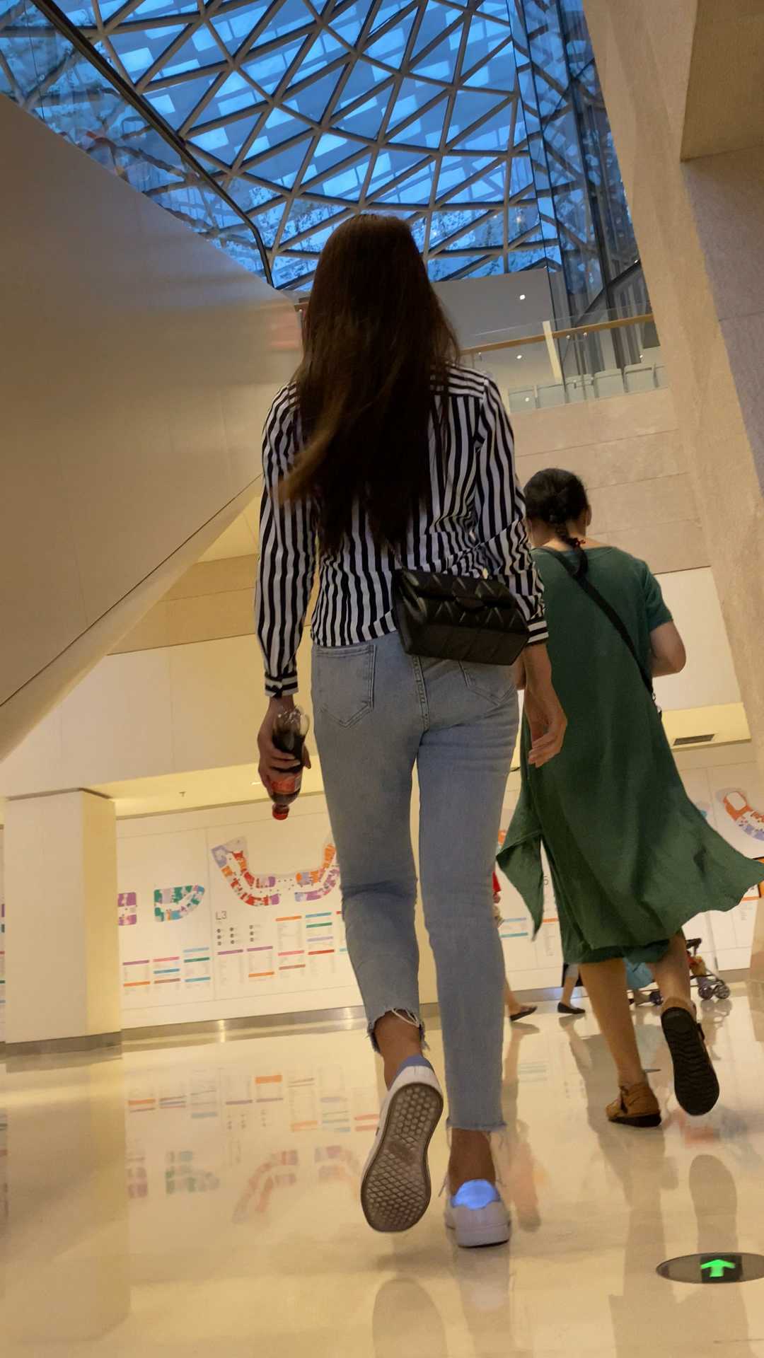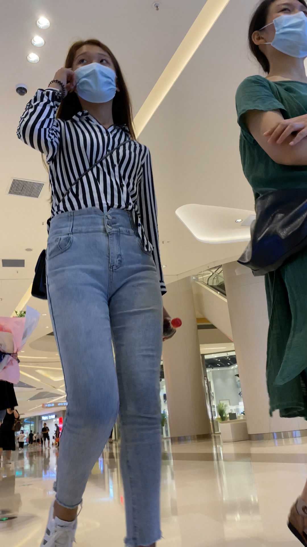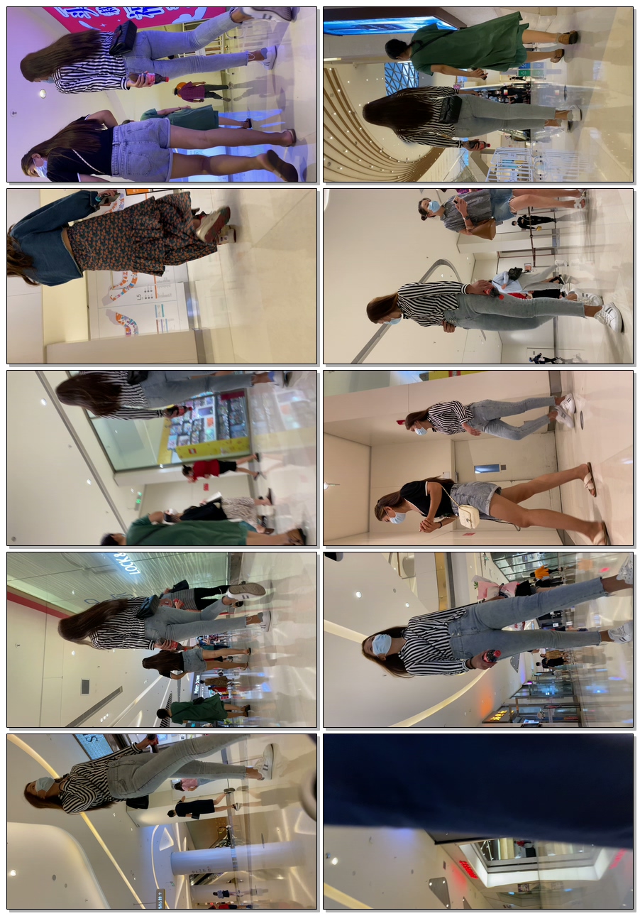 B981商场紧身灰牛仔长发妹子