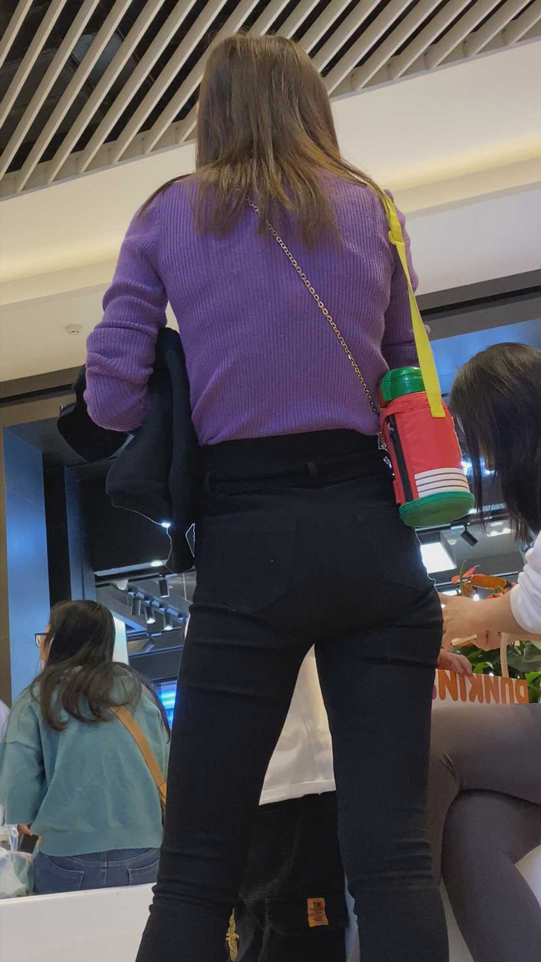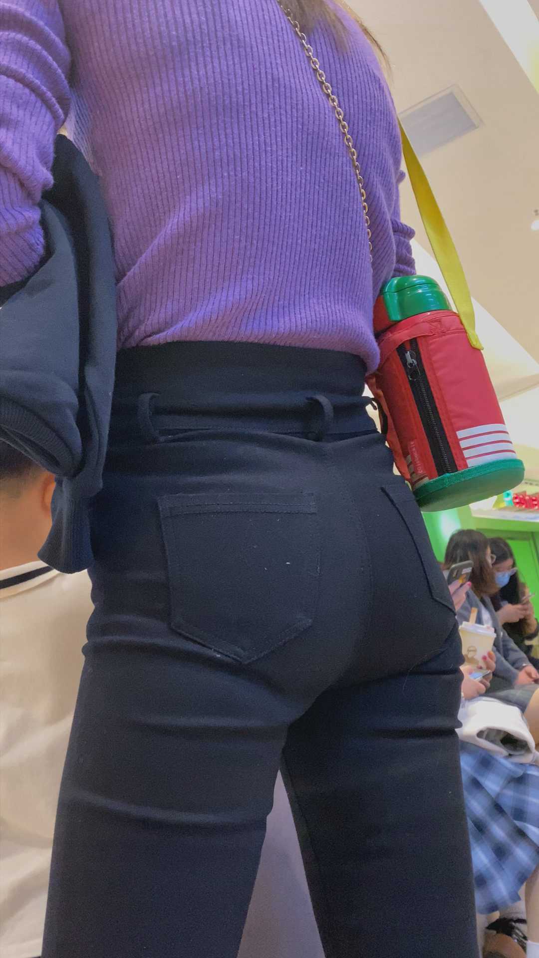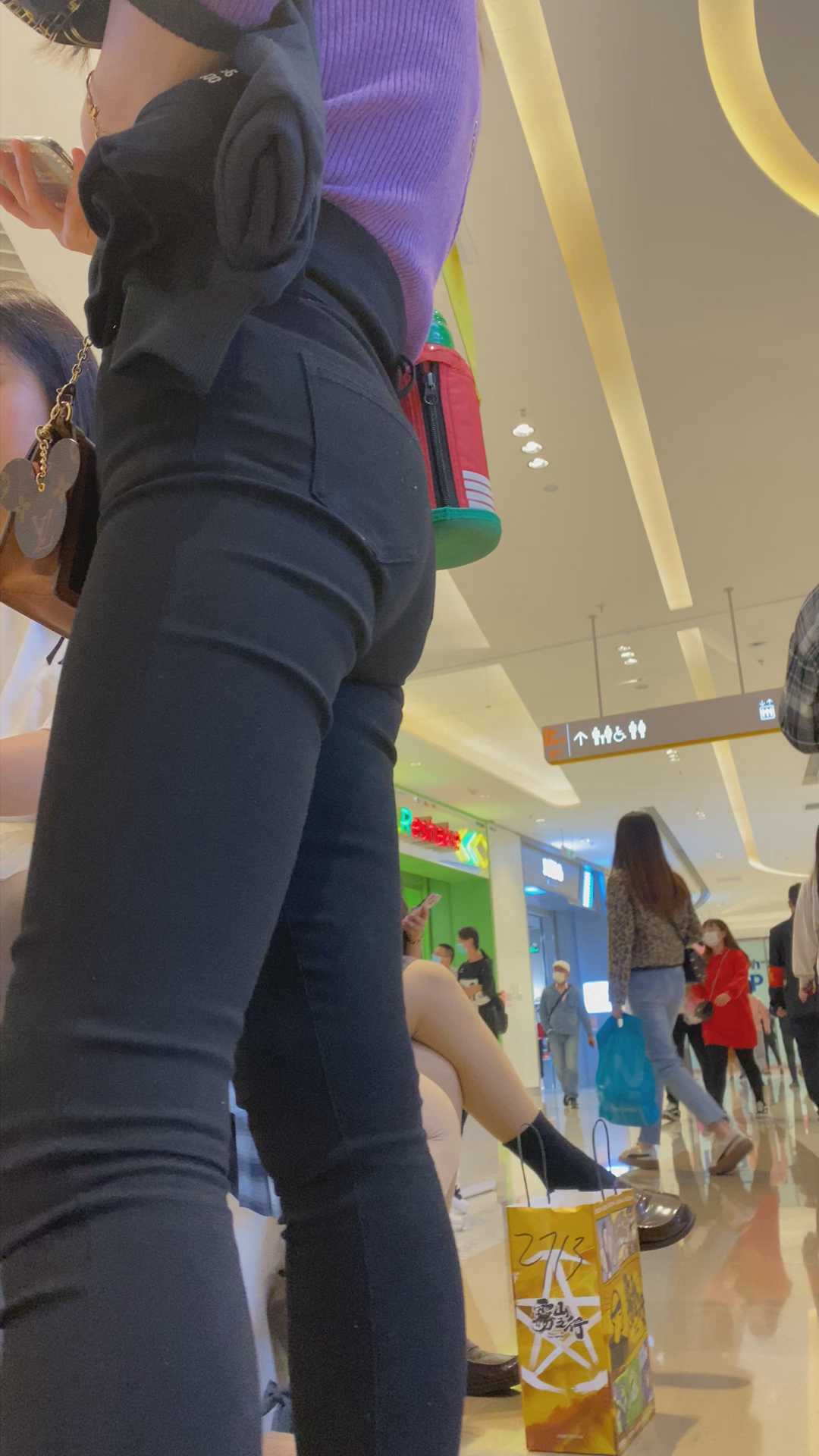 B999商场紧身黑打底裤紧内痕美女