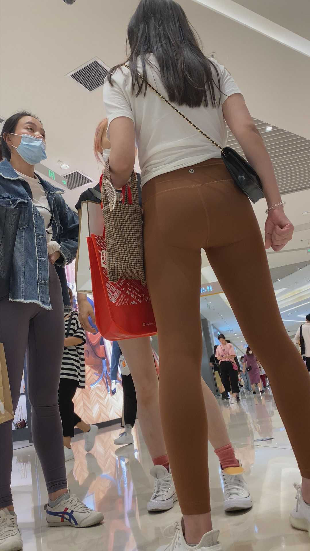 B1057少见橘红色瑜伽裤妹子