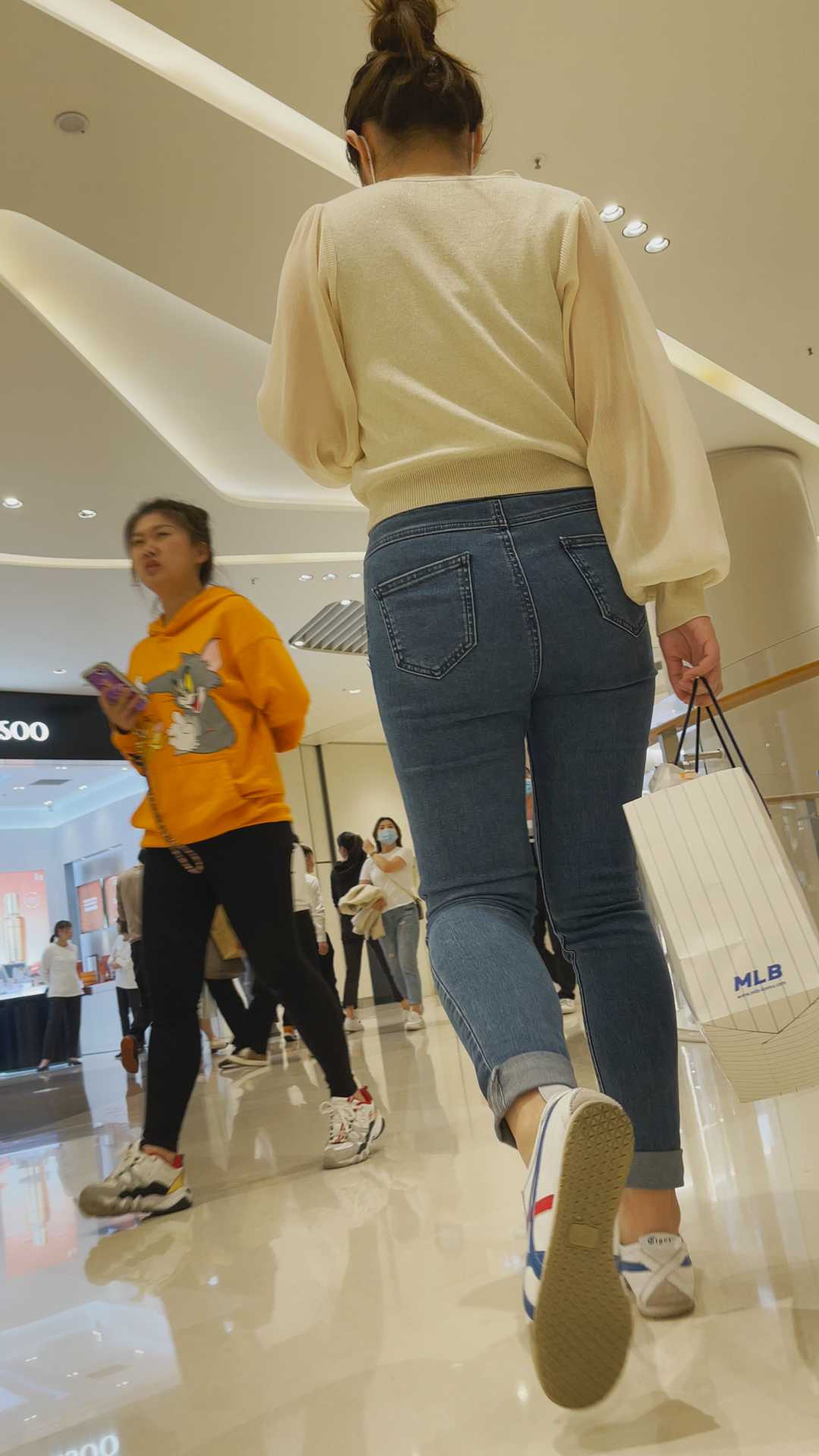 B1094性感紧身牛仔少妇上电梯