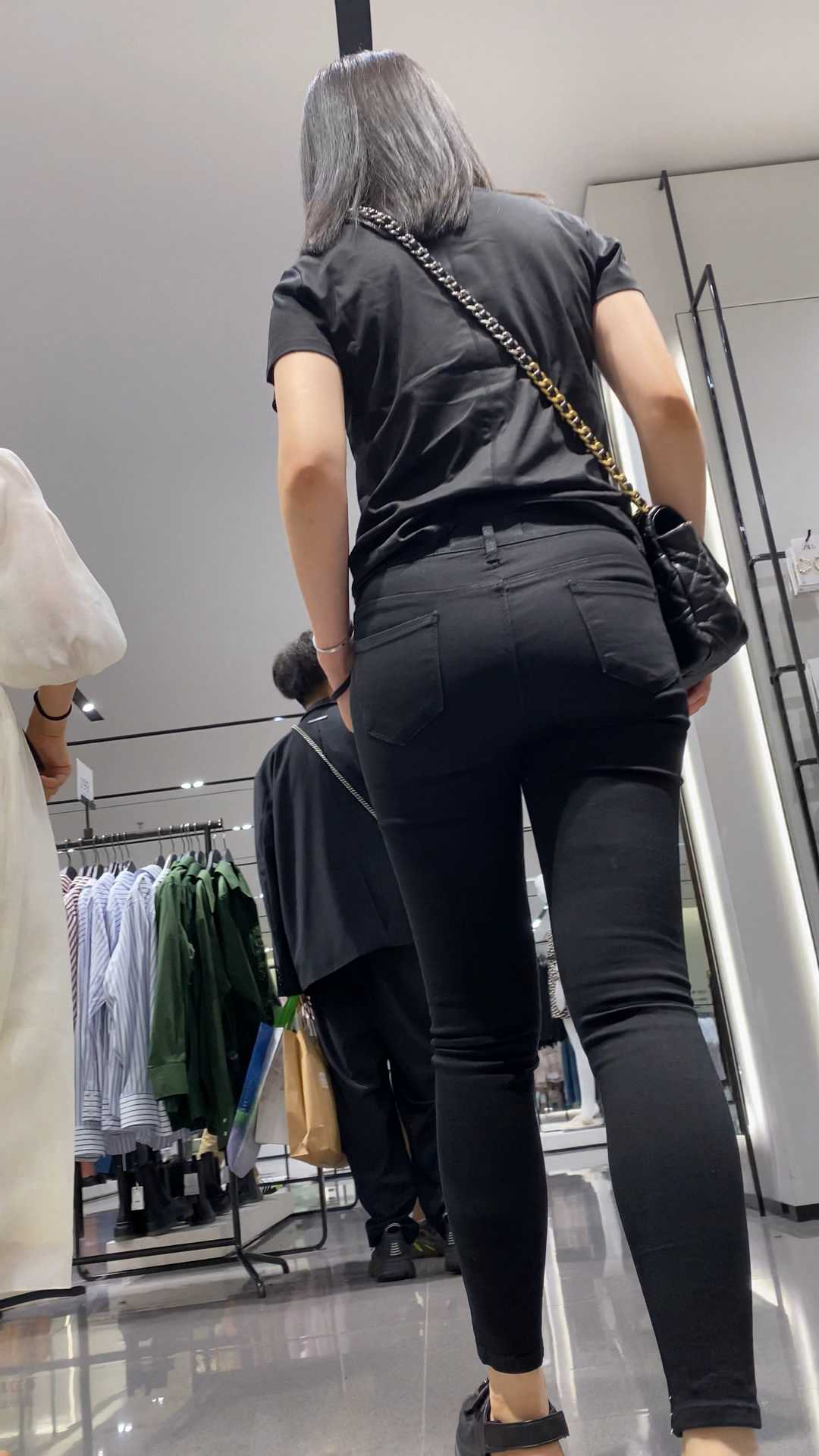 B1110性感饱满圆润黑裤少女