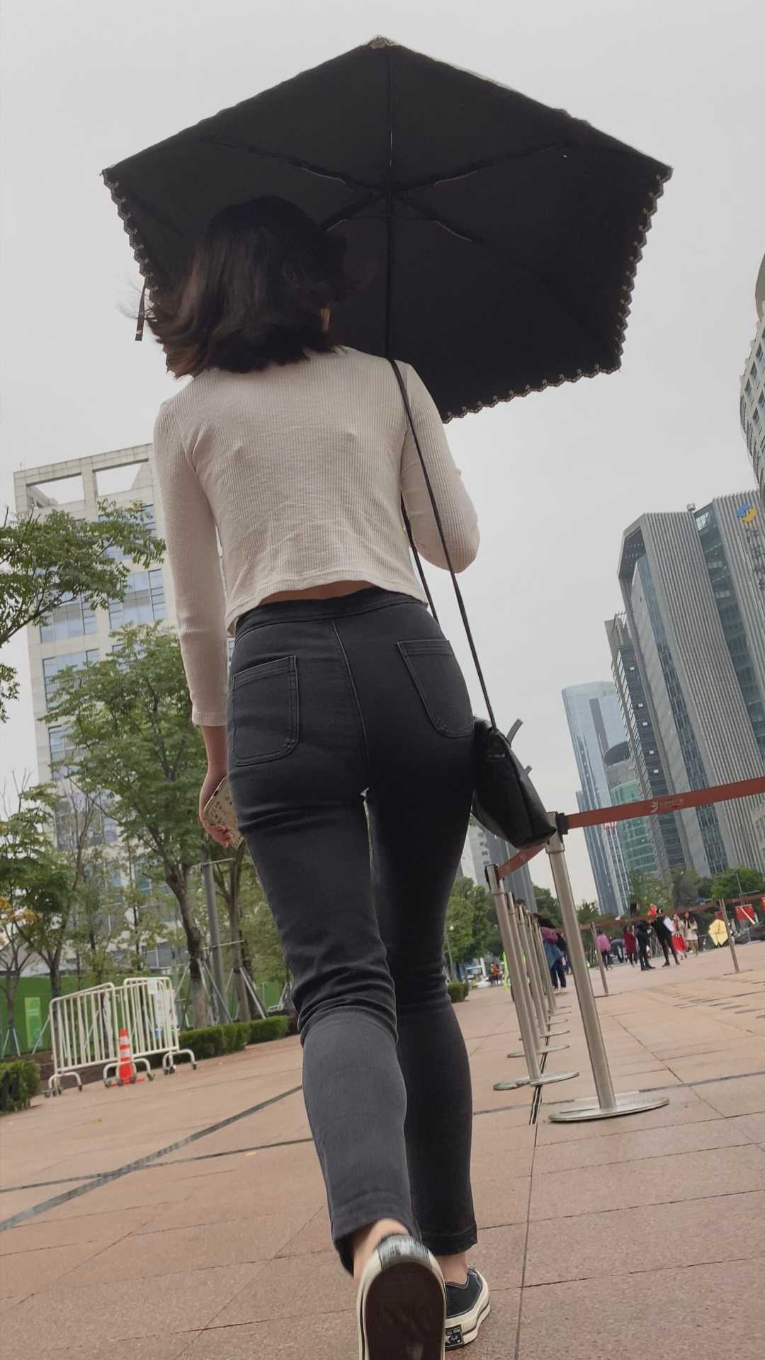 B1118性感黑牛仔少见苹果美臀美女