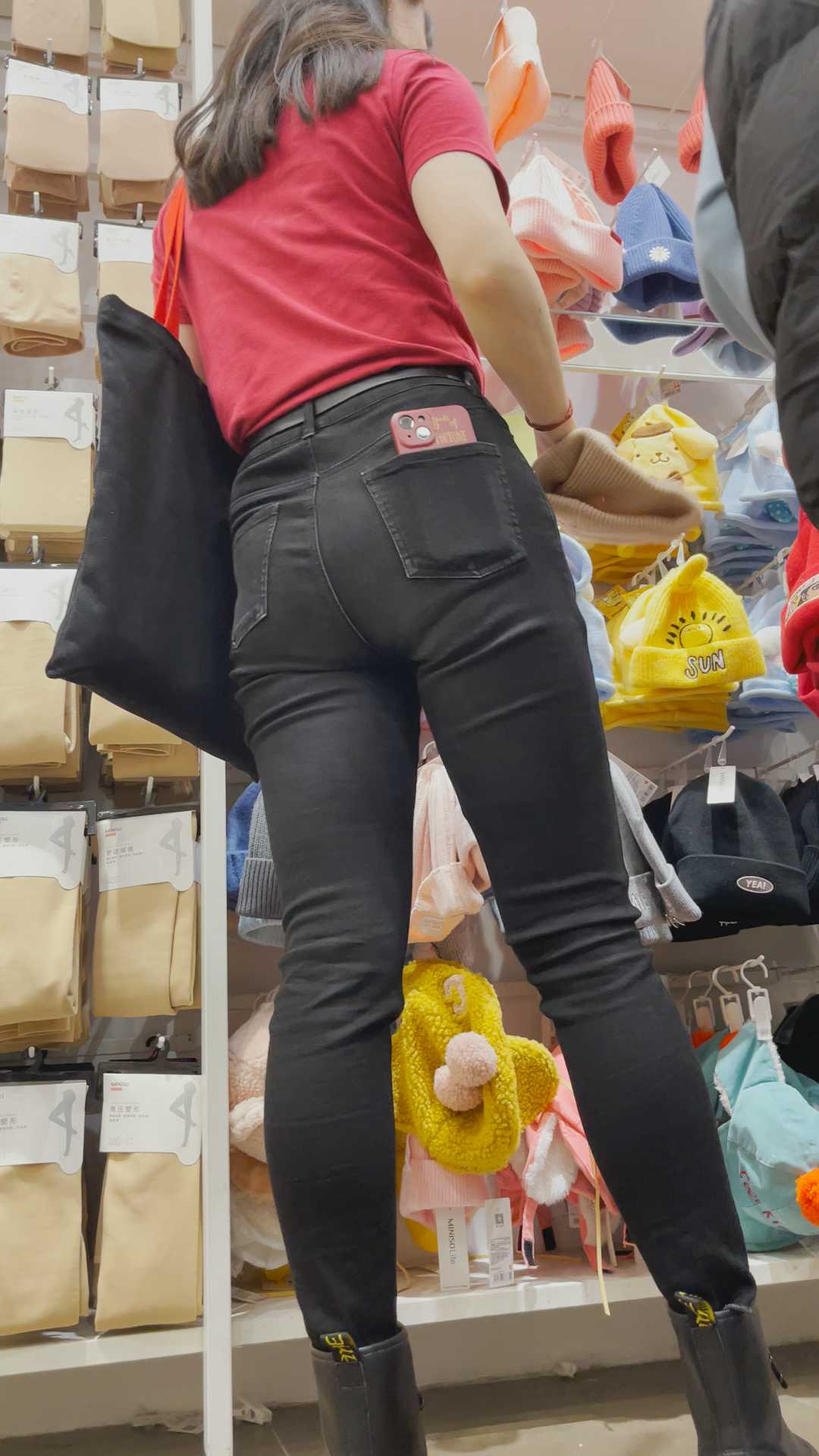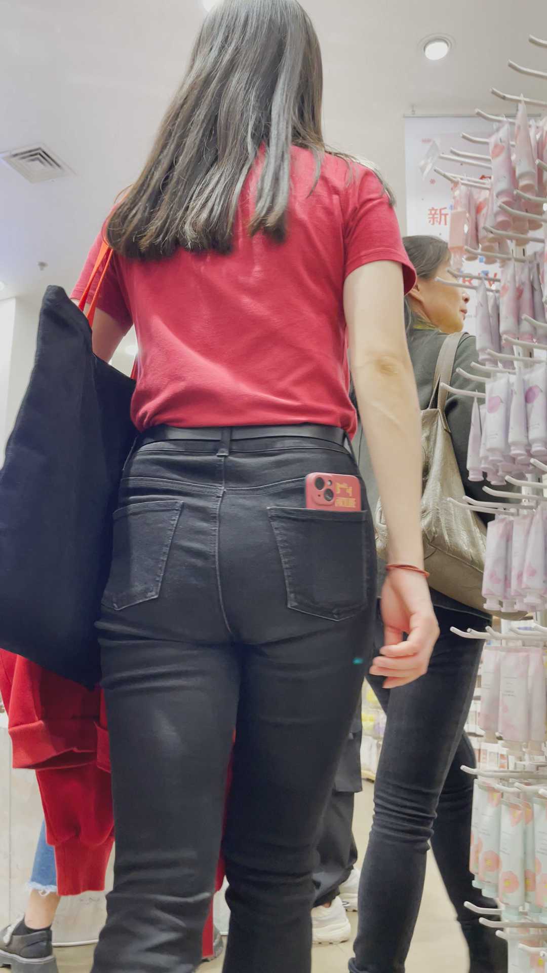 B1183高挑黑牛仔宽臀长发美女