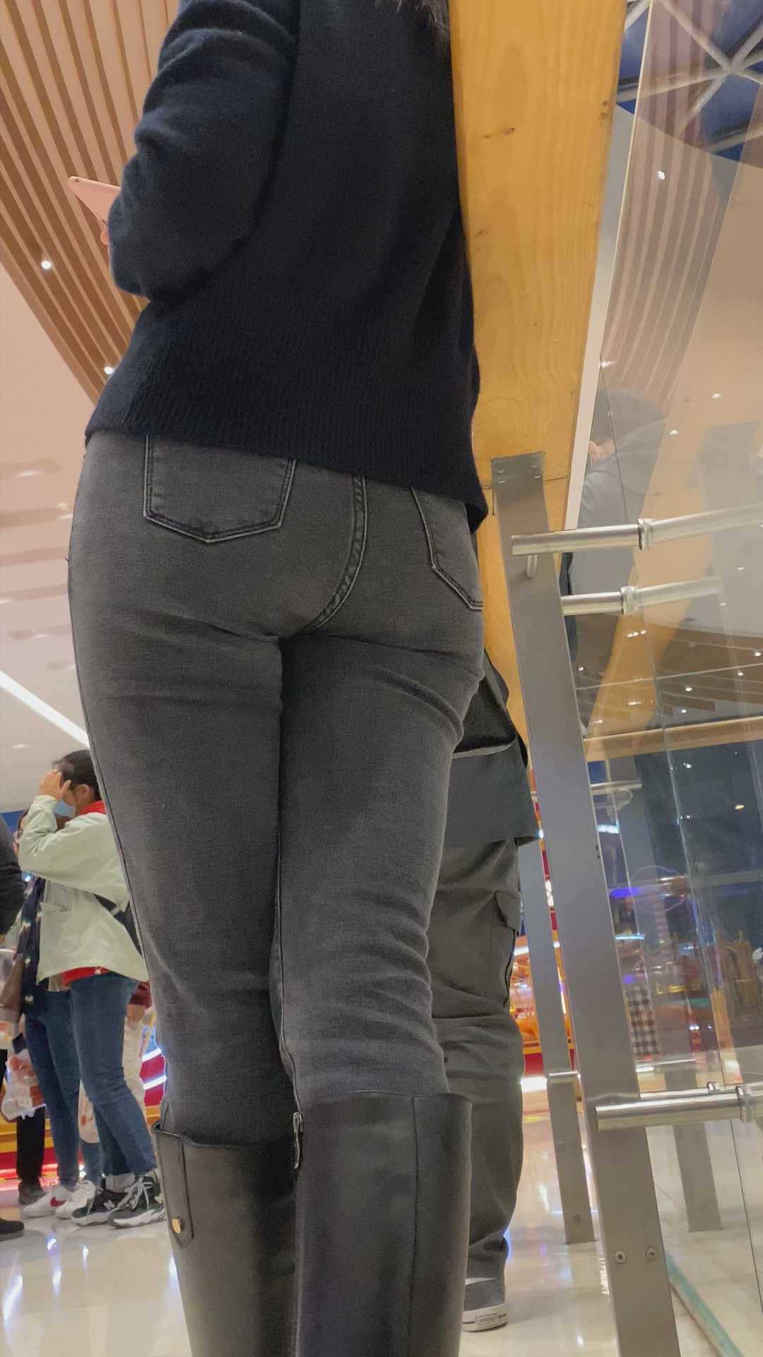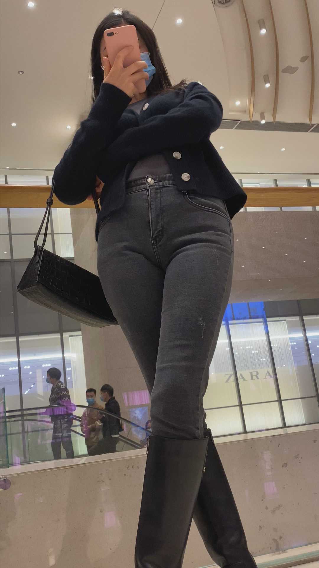 B1208极品灰牛仔裤小姐姐金三角特写