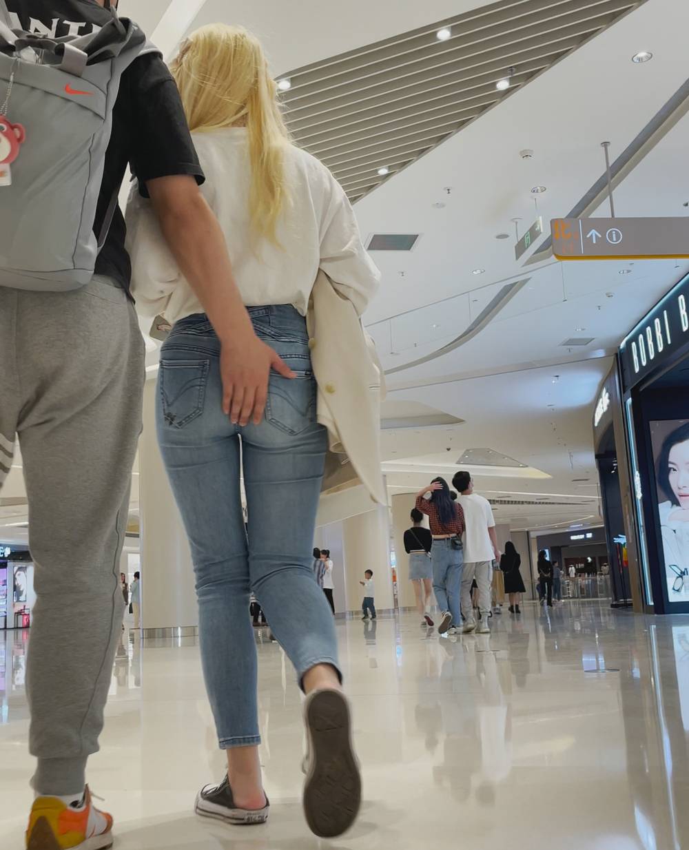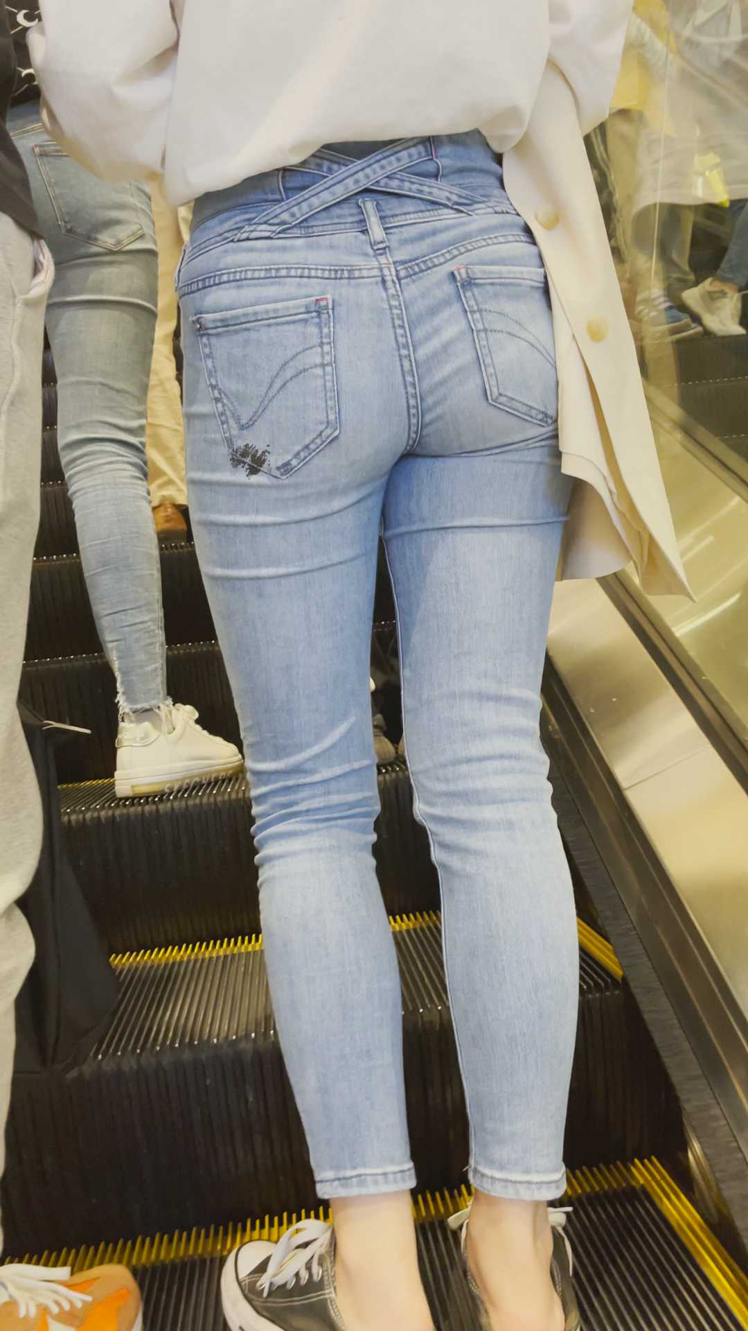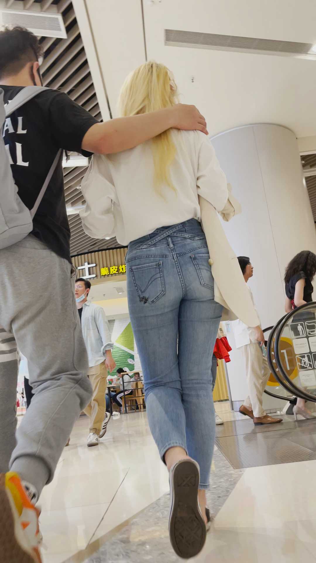 B1240紧身裤女勾引男友走路不踏实
