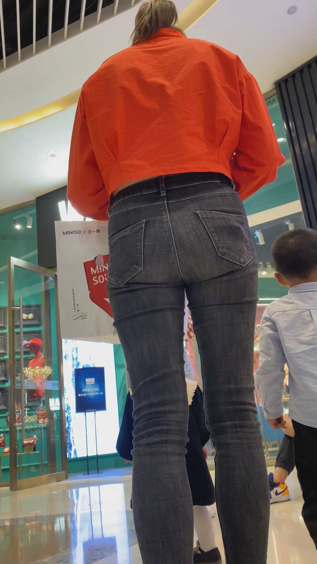 B1305紧身黑牛仔宽臀少妇