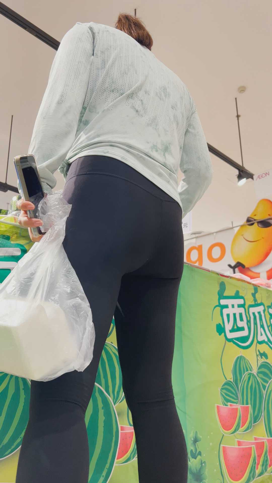 B1335超市翘臀健身裤少妇